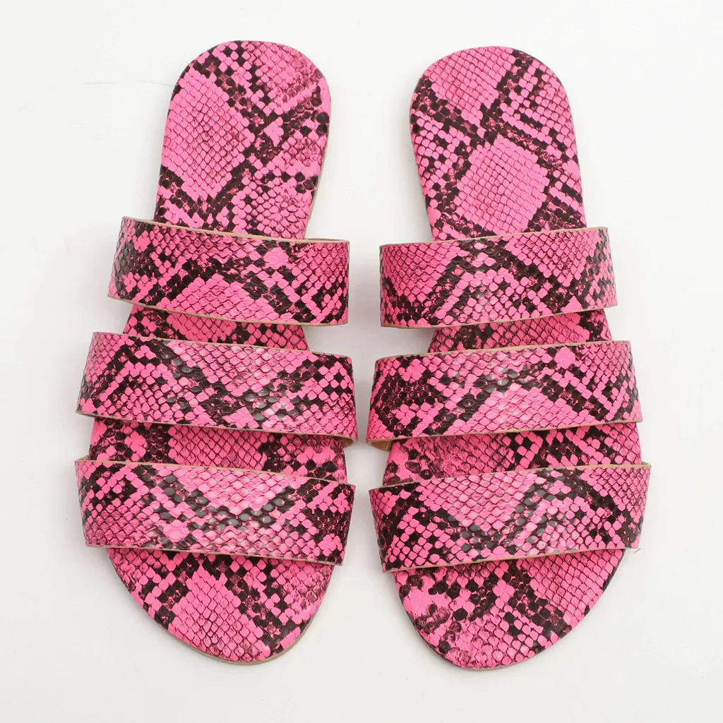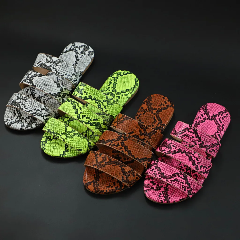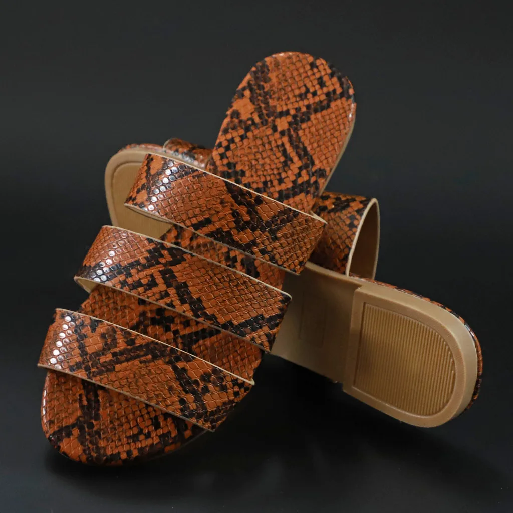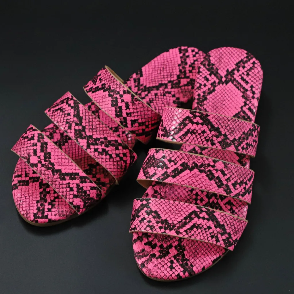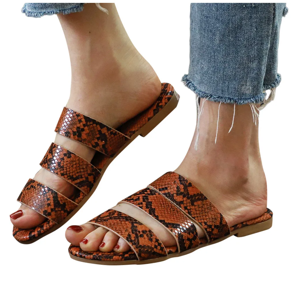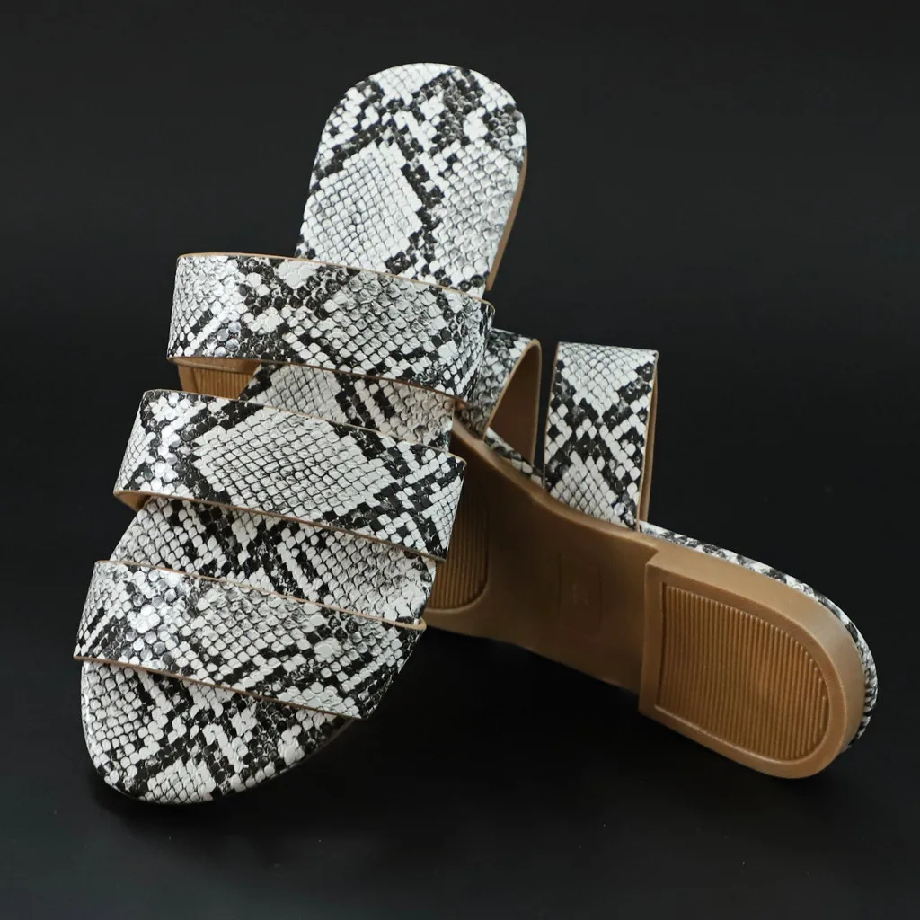 Jaycosin/женские шлепанцы; Новинка; Модная обувь с принтом змеиной кожи; Женские пляжные шлепанцы на плоской подошве; Вечерние сандалии; Zapatos De Mujer