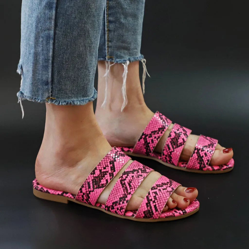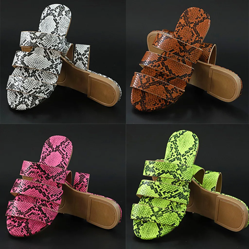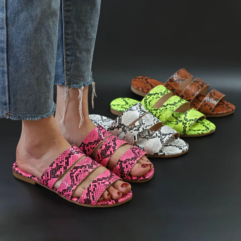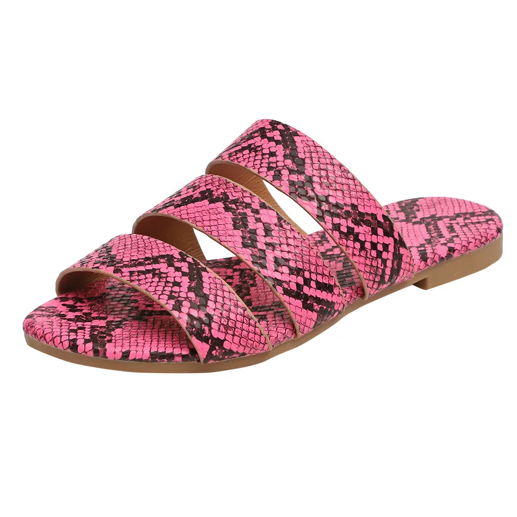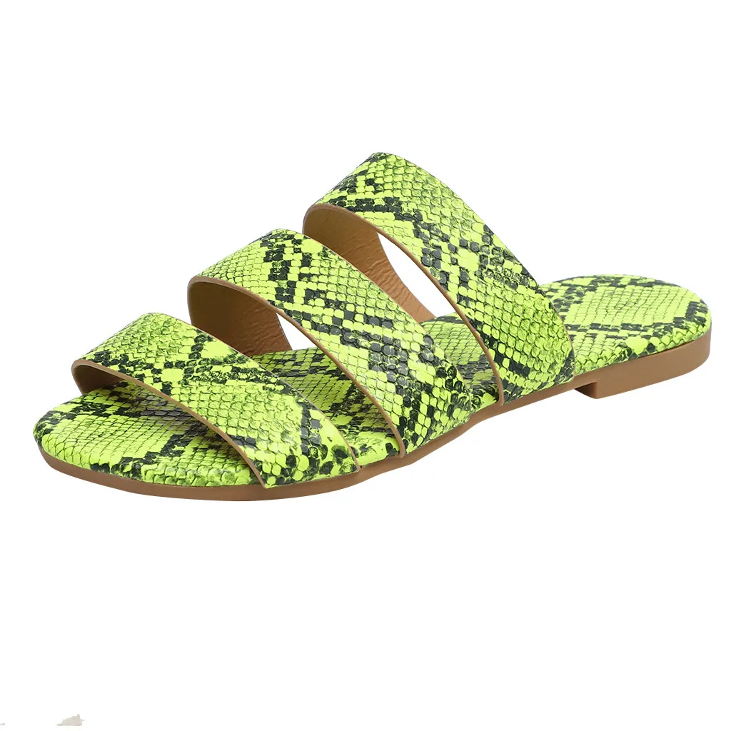Jaycosin/женские шлепанцы; Новинка; Модная обувь с принтом змеиной кожи; Женские пляжные шлепанцы на плоской подошве; Вечерние сандалии; Zapatos De Mujer