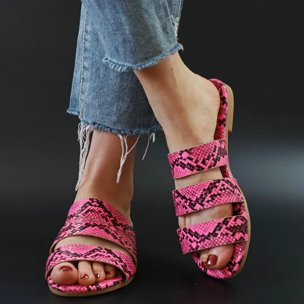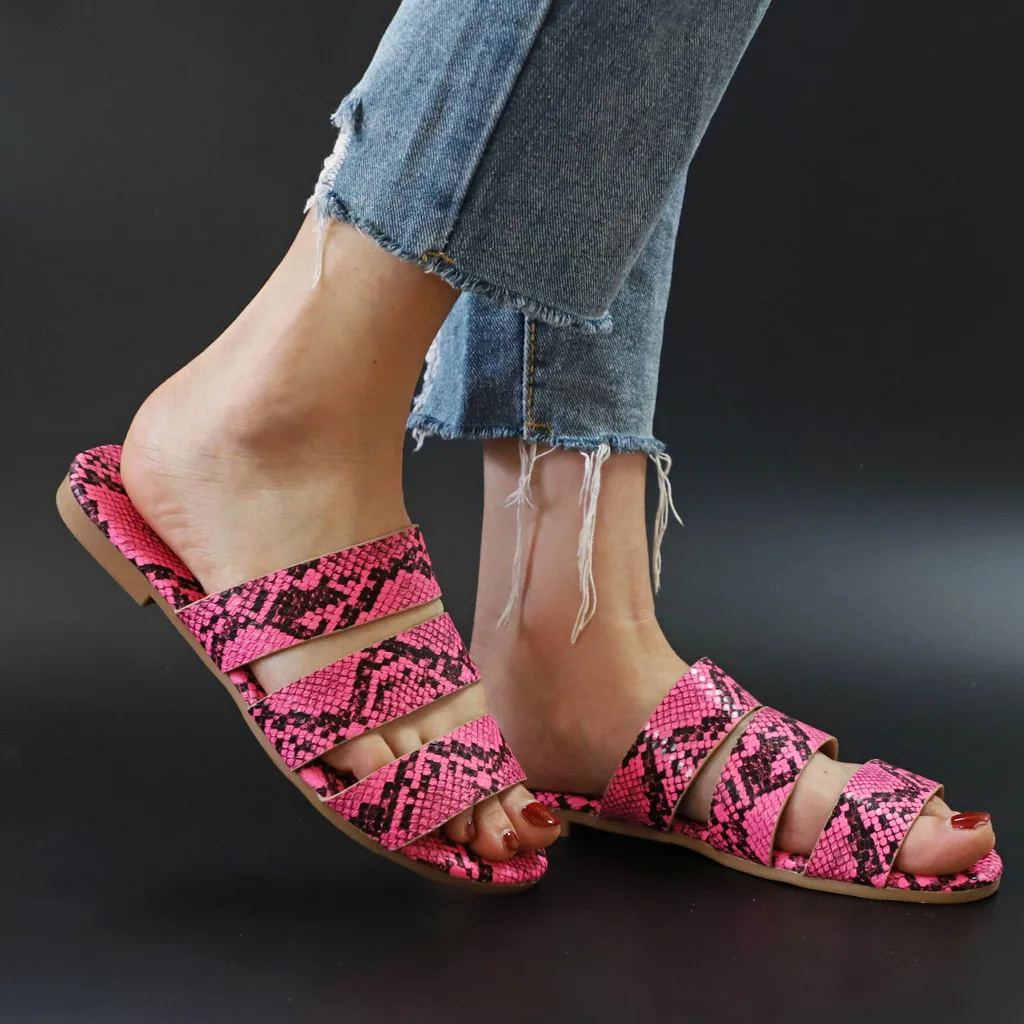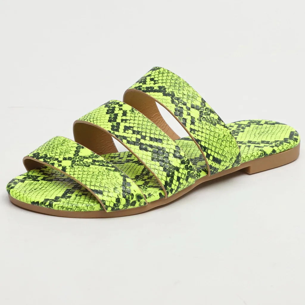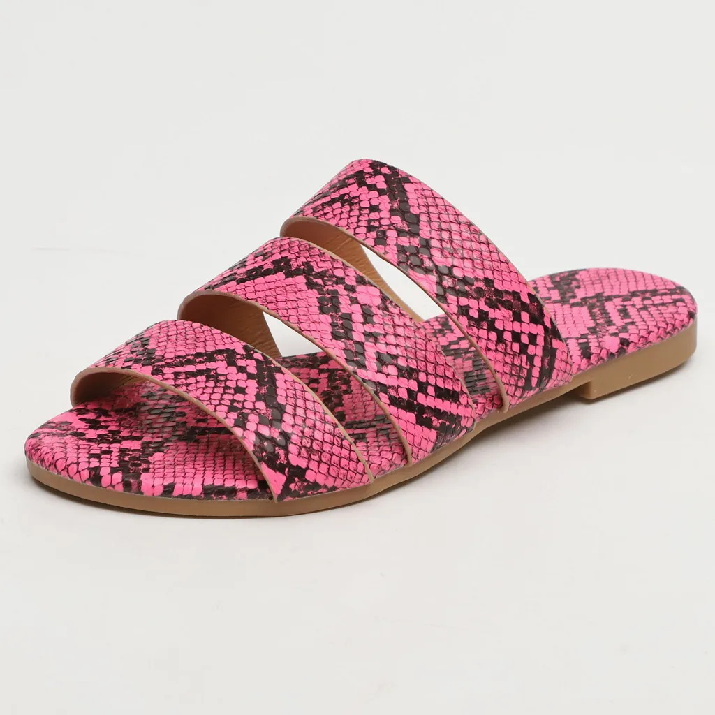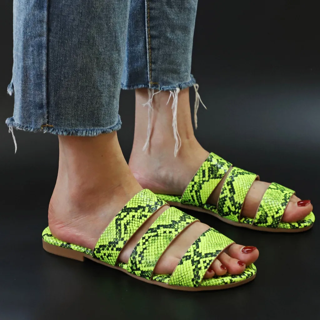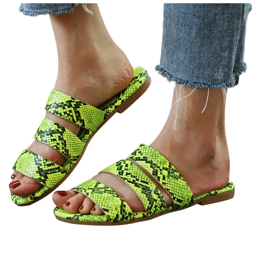 Jaycosin/женские шлепанцы; Новинка; Модная обувь с принтом змеиной кожи; Женские пляжные шлепанцы на плоской подошве; Вечерние сандалии; Zapatos De Mujer