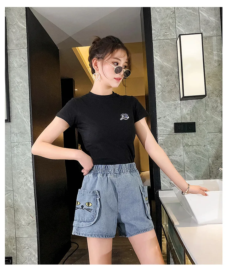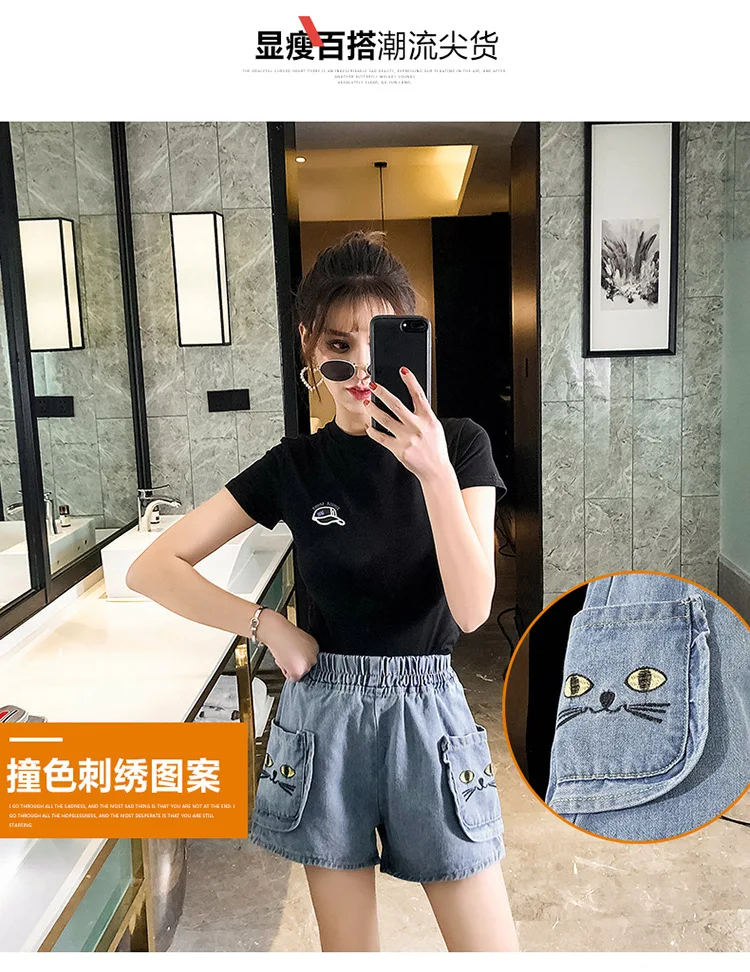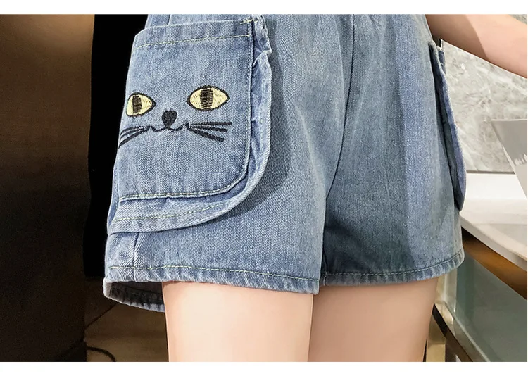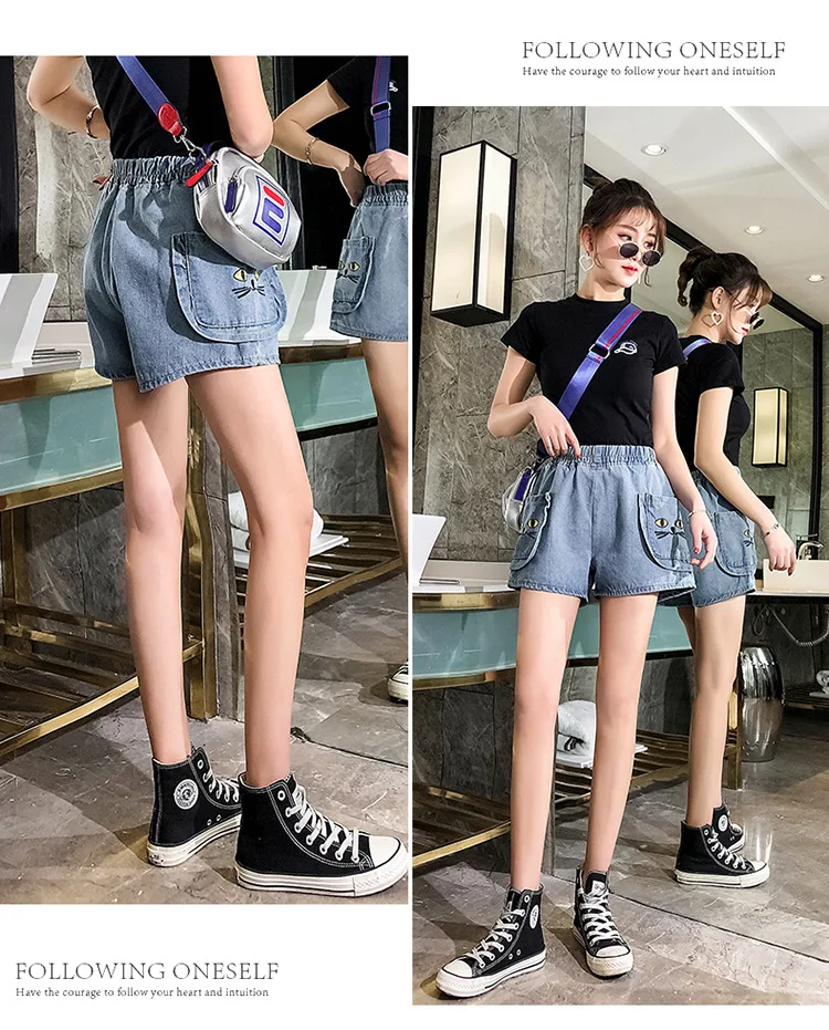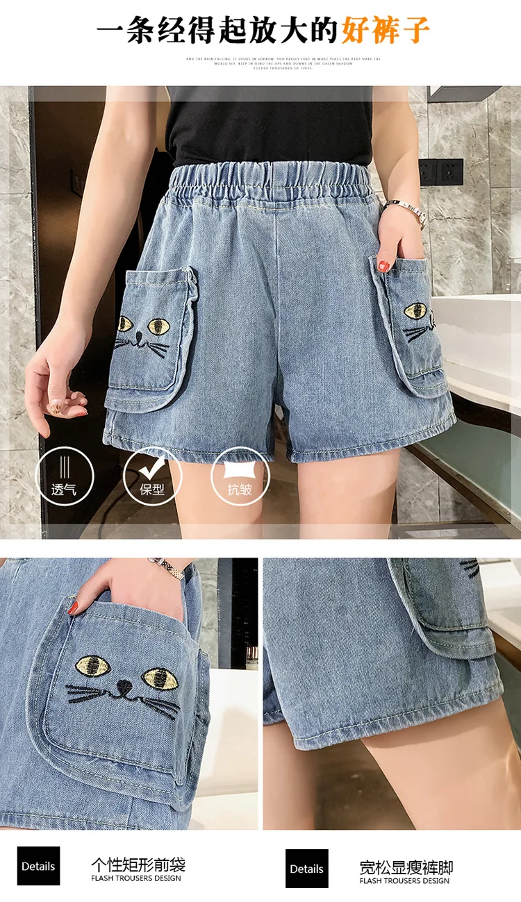 Джинсовые шорты большого размера 2020, женские широкие брюки с завышенной талией, летние новые популярные джинсы с большим карманом и ржавчим цветком #1009