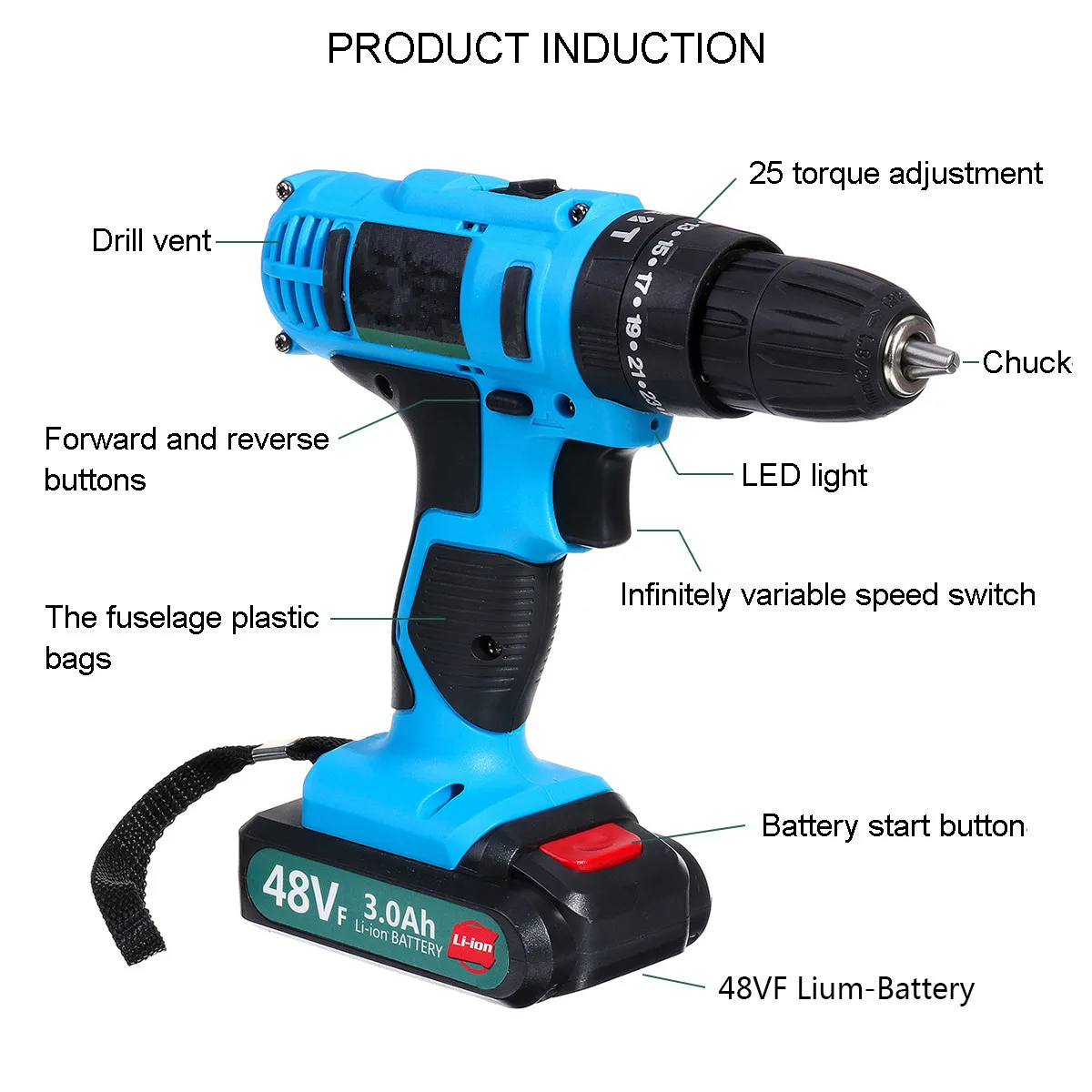 Посылка включает в себя: 1 электрическая дрель Зарядное устройство-1 шт. 1 или 2 x литий-ионный аккумулятор Характеристики: Размер: 20 см x 21 см/7,9 "x 8,3" Тип питания: режим зарядки Напряжение электродрели: 21 в Тип батареи: литий-ионный аккумулятор Напряжение батареи: 25 в Входное напряжение: 110-240 В Максимальная скорость: 800 об/мин Скорость без нагрузки: 2000 (об/мин) Номинальная мощность: 200 Вт Время использования: около 150 мин Цвет: синий + черный Особенности: -18 установка крутящего момента, точное управление для сверления дерева, металла, стены и всех винтовых приводов. -Светодиодный светильник, удобный в темной рабочей среде. -Умная и высокая эффективность, плавное изменение скорости, высокая функция крутящего момента. -Вращение по часовой стрелке и против часовой стрелки, можно сделать только небольшое нажатие. -Конструкция вентиляции и отведения тепла эффективно уменьшает тепло машины. |