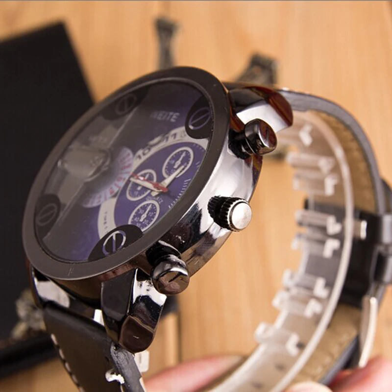 Модные Роскошные Мужские Аналоговые спортивные стальные чехол кварцевые кожаные Наручные часы