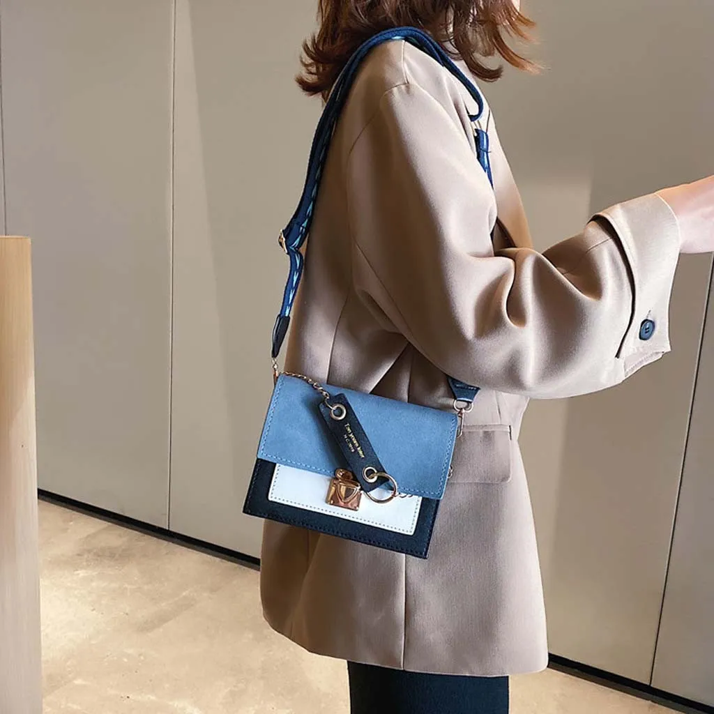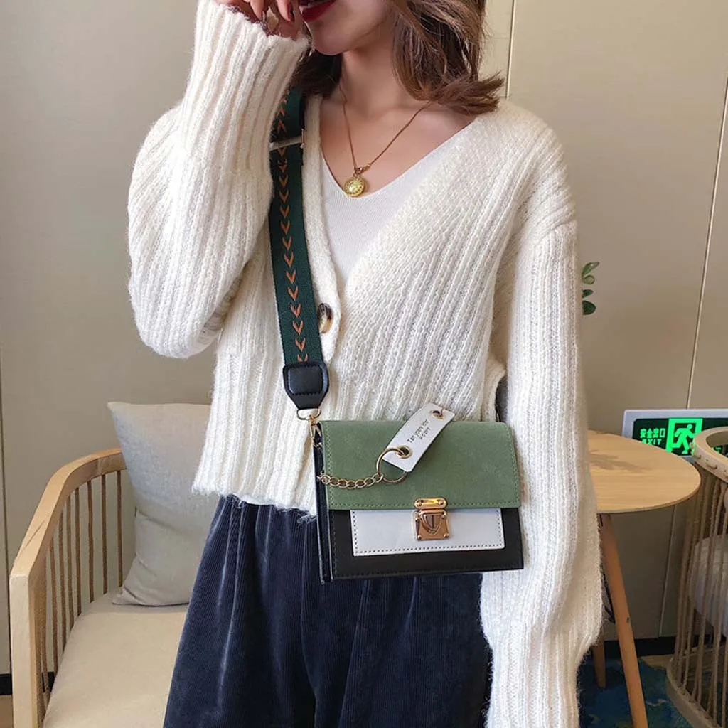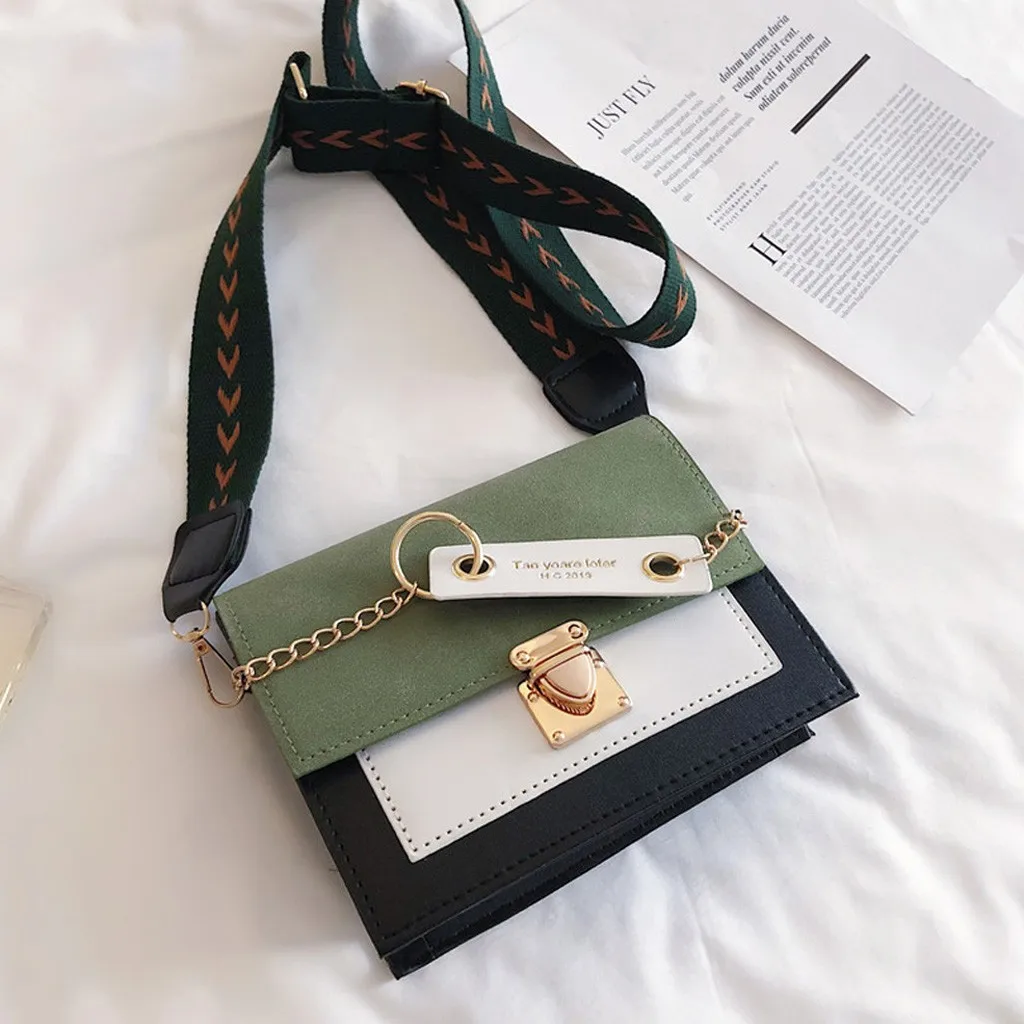 Женская матовая контрастная цветная сумка через плечо модная маленькая квадратная сумка