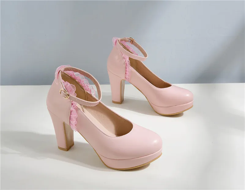 Meotina/женские туфли-лодочки на высоком каблуке туфли с ремешком на щиколотке на платформе с пряжкой милые вечерние туфли с круглым носком женские Большие размеры 43