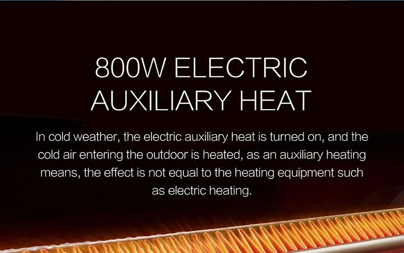 Тепловой Электрический вспомогательный 800 Вт В холодную погоду включается электрическое вспомогательное тепло, а холодный воздух, входящий на улицу, нагревается в качестве дополнительного средства нагрева, эффект не равен отопительному оборудованию, например электрическому нагреву.