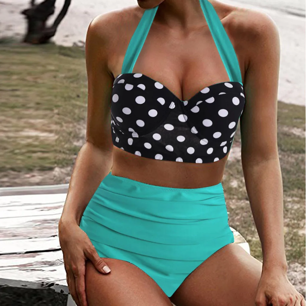Женский купальник бикини с высокой талией, Женский комплект бикини в стиле ретро