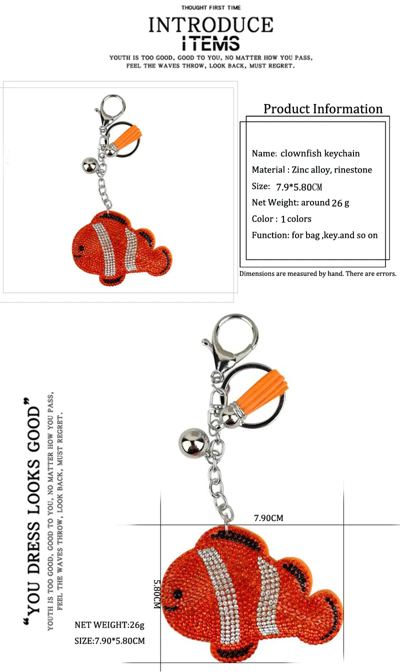 Хрустальные стразы, брелок с рыбой-клоуном, автомобильные брелоки, женские сумки, украшения, аксессуары, подвески с лошадью, ювелирные изделия
