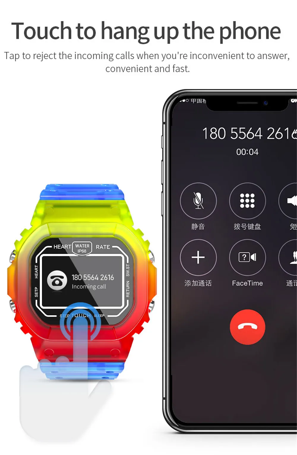 ЦП: SYD8811 Версия Bluetooth: BT 4,0 Совместимость ОС: Android 5,0 или выше, iOS 9,0 или выше Водонепроницаемость: IP68 Размер экрана: 1,14 TFT Разрешение: 135*240 пикселей Емкость аккумулятора: 180 мАч Время работы в режиме ожидания: около 30 дней Время использования: около 12 дней Время зарядки: около 3 часов Тип зарядки: зажим для зарядки Язык приложения: английский, немецкий, корейский, испанский, японский, французский, русский, арабский, украинский, Италия, Португалия, китайский, традиционный китайский