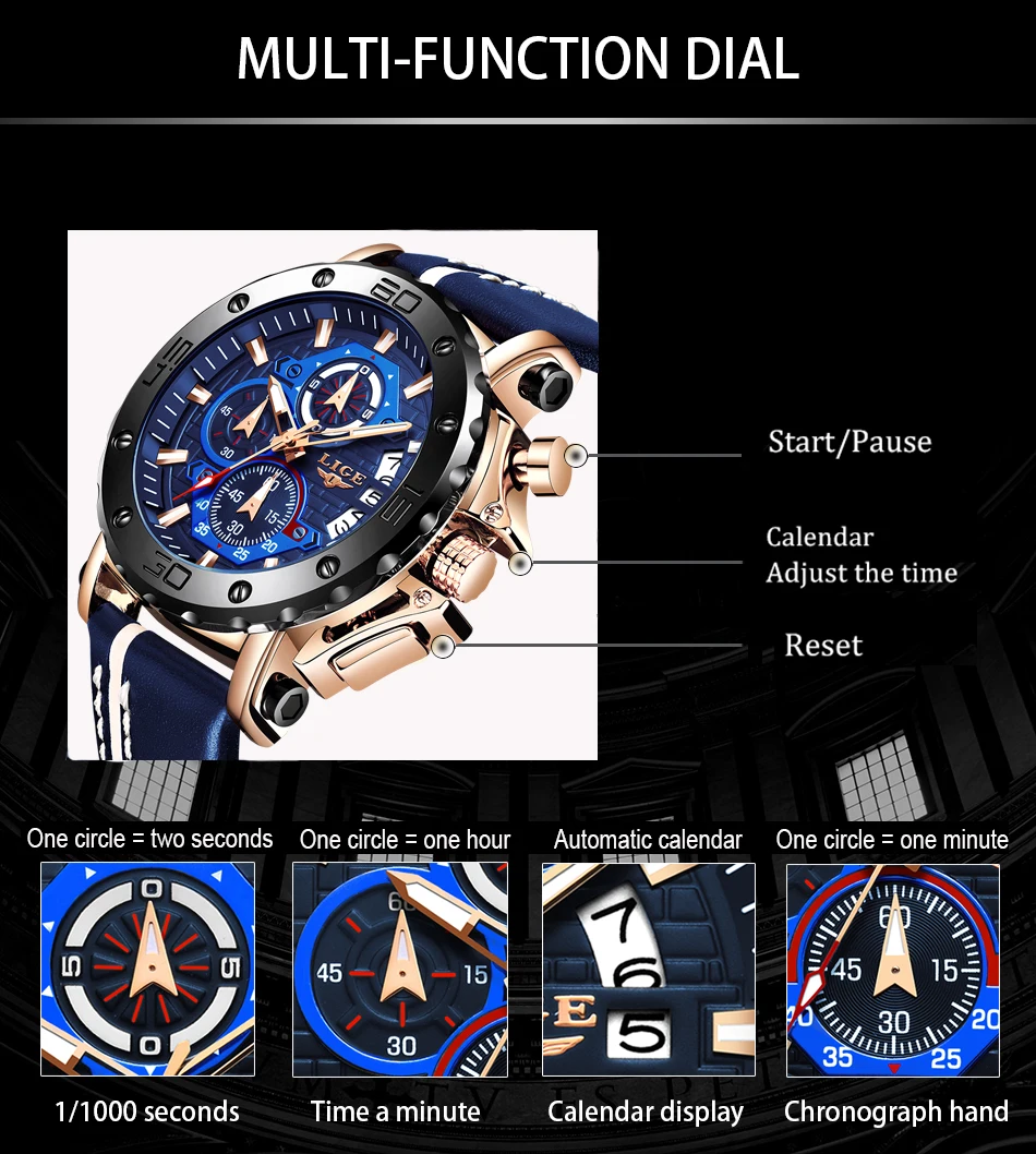 Здравствуйте! Добро пожаловать в наш магазин! Качество на первом месте + самое лучшее обслуживание. Все клиенты-наши друзья Описание: - 100% новый бренд и высокое качество;-роскошный высококачественный дизайнерский циферблат, функция отображения даты; - 3 атм/30 м водонепроницаемый (поддерживает душ и плавание в холодной воде, не используйте часы под водой, не поддерживает горячую воду); -Отображение даты и времени-высококачественный кожаный ремешок-чехол Материал: нержавеющая сталь-Материал ремешка: Высококачественная кожа особенности ремешка: светящийся, водонепроницаемый, хронограф, календарь, Большой циферблат, кожаный ремешок, модный, Повседневный, подходит для улицы, велоспорта, пешего туризма, плавания, военной упаковки в комплекте: - 1 LIGE watch - 1 LIGE box - 1 Гарантия Карта