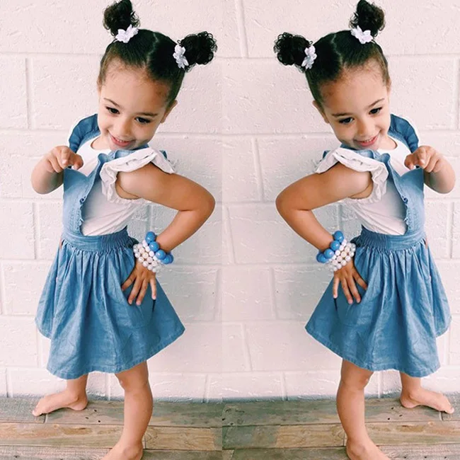 Повседневный Джинсовый верх с лямками для маленьких девочекОдежда Высокое качество и абсолютно новый 100% Основной цвет: как на картинке Новинка в моде Материал: хлопок Просим перепроверять размеры детей, рост и полноту по размерной таблице перед покупкой/подачей заявки. Спасибо.Таблица размеров: