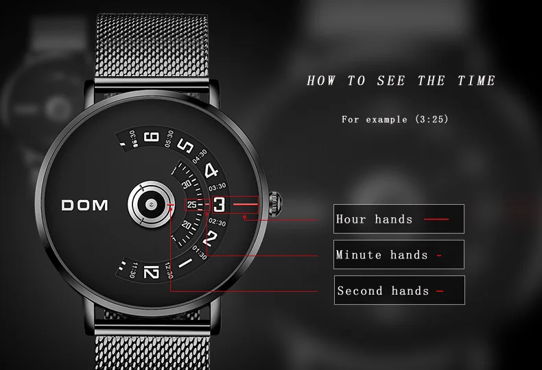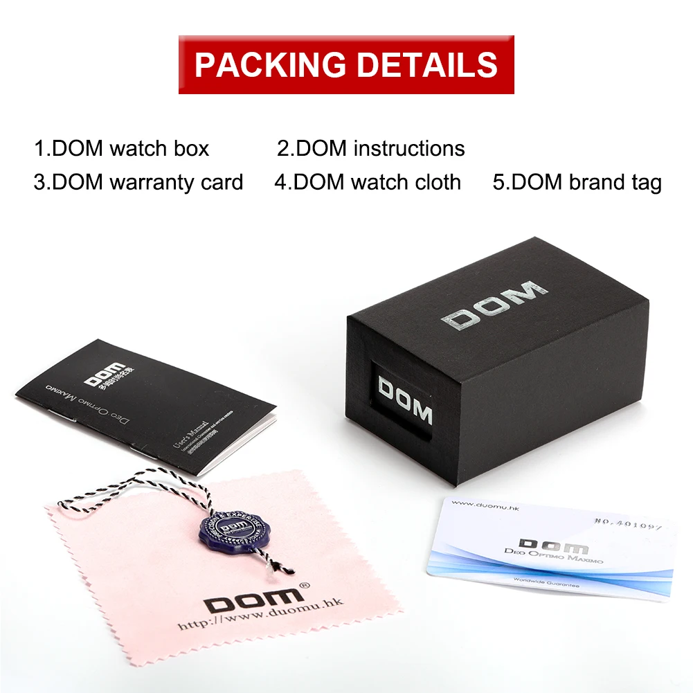 -100% новые, с этикеткой, высокое качество -Дисплей: кварцевые часы -Стиль: модный, Повседневный, хип-хоп, разработки креативного, уникального Основные Особенности: -3 АТМ/30 М Водонепроницаемость (поддержка холодного душа и плавания, не использовать часы под водой, не поддерживать горячую воду); -Качественный чехол из цинкового сплава; -Миланский сетчатый ремень -Механизм: японский PC21 три иглы Параметры приближения: -Чехол Диаметр: 4 см -Чехол Толщина: 11 см -Диапазон Ширина: 2 см -Общая Длина: 19,5 см Посылка включает в себя: -Часы DOM-1 шт. -1 x DOM Box