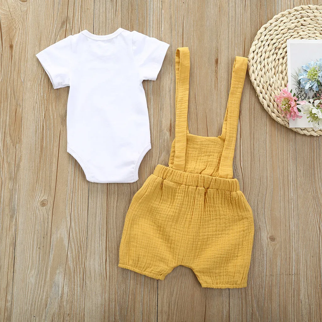 Летний костюм для малышей, с короткими рукавами, с цветочным принтом, хлопок, с лямкой на шее + однотонные красивые штаны на лямках красивая одежда для детей, 50 *