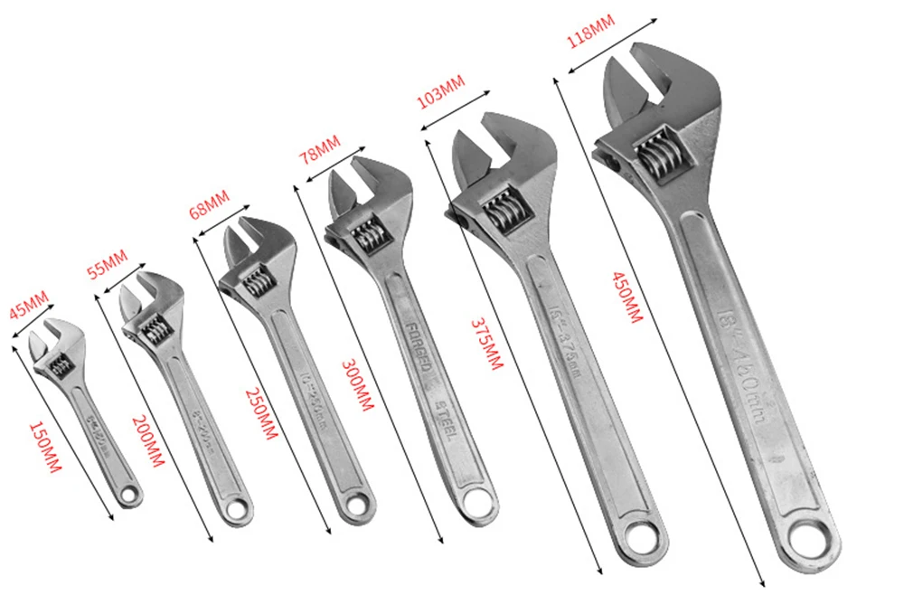 Регулируемый гаечный ключ 4-24 дюймов хромовый ванадиевый стальной гаечный ключ для ремонта ручного инструмента аппаратные инструменты многофункциональный скользящий гаечный ключ