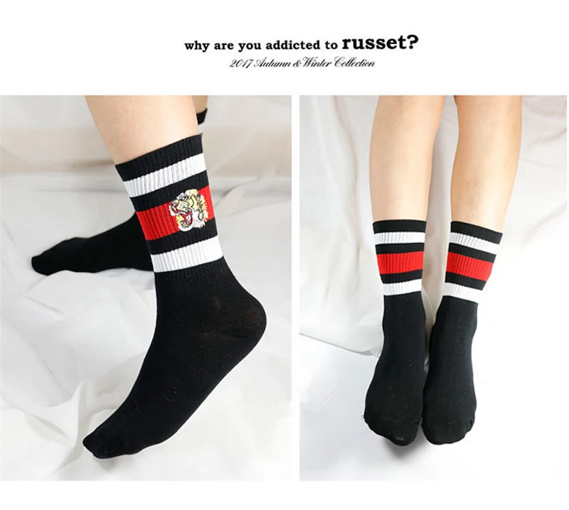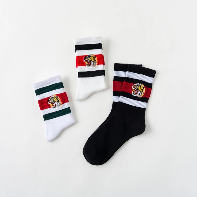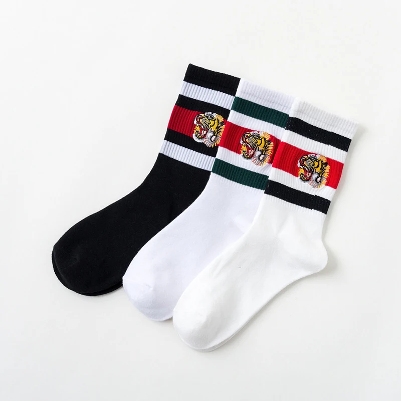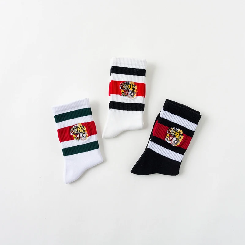 Женские носки с вышивкой в полоску тигра, хлопковые носки с вырезом лодочкой Harajuku, унисекс, носки для скейтборда, Осень-зима, уличная одежда, хип-хоп, Calcetines