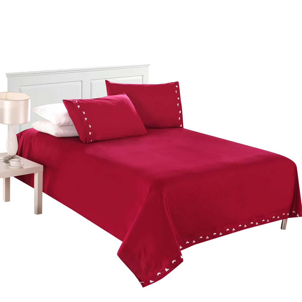 Удобный чистый цвет со специальным украшением Лотос Вышивка Полный Набор Уход за лицом и кожей 100% полиэстер домашнее постельное белье