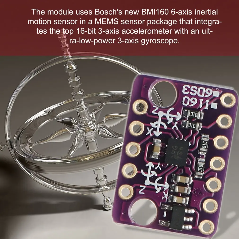 1. Это 6-осевой гироскоп BMI160 6DOF гравитационный модуль датчика акселерометра IIC SPI.