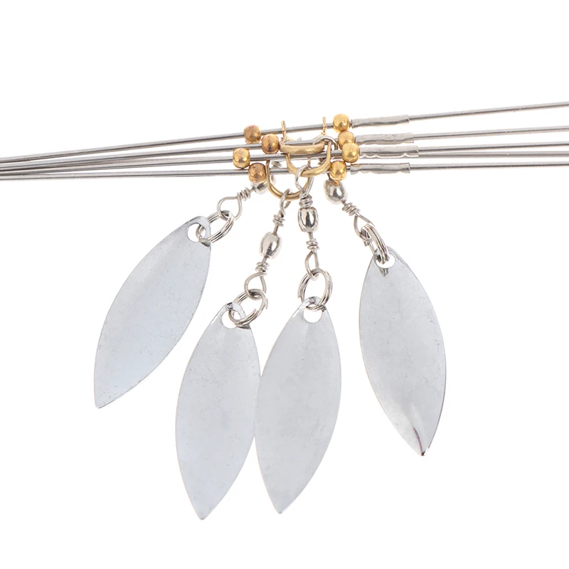 4. Оснащен вращающимися металлическими блестками, создает приятный ход и постоянно мигает, чтобы привлечь рыбу.