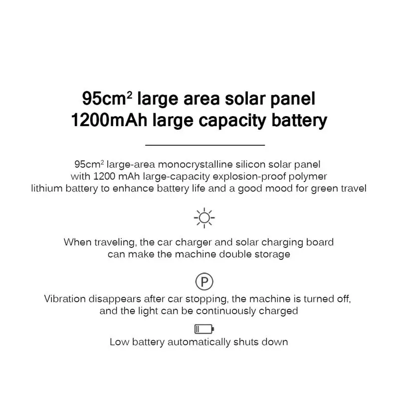 95 квадратных спиров солнечных панелей большой площади и 1200 мАч большой емкости взрывозащищенных клеток повышают выносливость.
