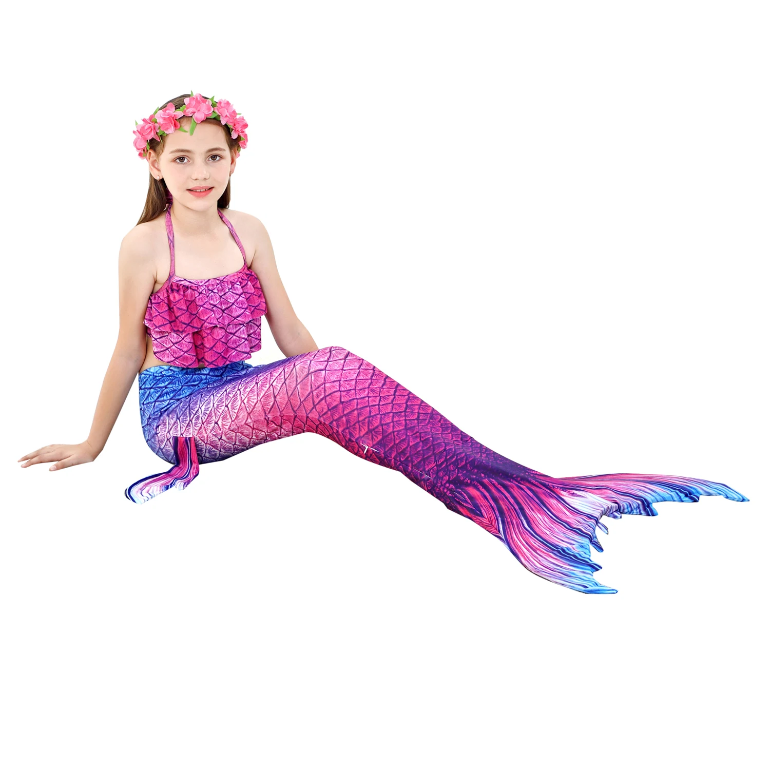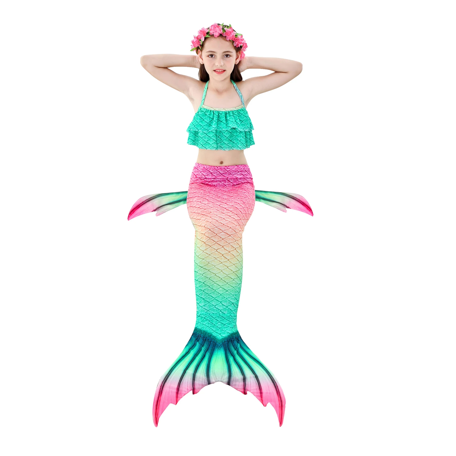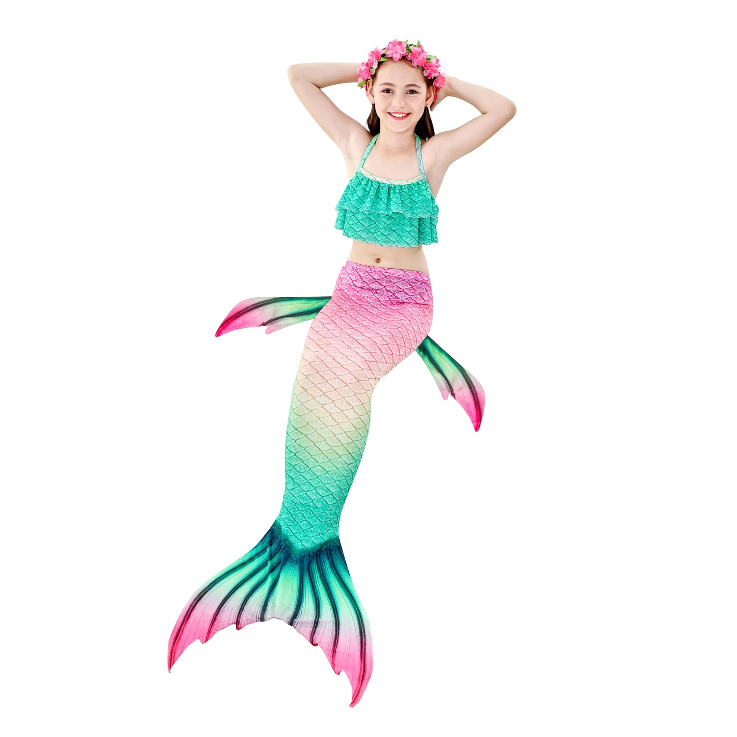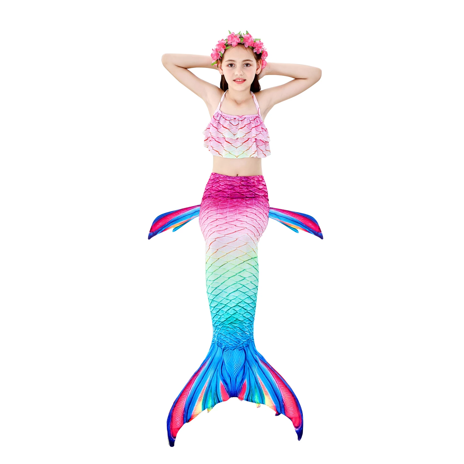 Детские хвосты маленькой русалки для девочек с плавником, купальник бикини, купальный костюм, платье для девочек С флиппером, моноласт для плавания