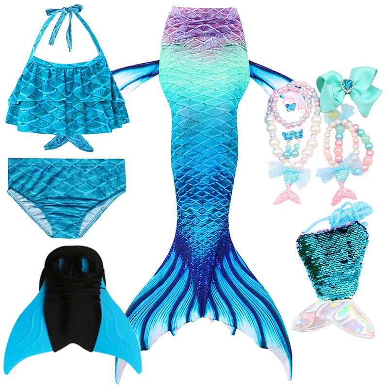 3 шт.: 1 платье с хвостом русалки + 1 бюстгальтер + 1 шорты 4 шт.: 1 платье с хвостом русалки + 1 бюстгальтер + 1 шорты + 1 гирлянда 5 шт.: 1 * платье с хвостом русалки + 1 * бюстгальтер + 1 * шорты + 1 * гирлянда + 1 * монофин 6 шт.: 1 * платье с хвостом русалки + 1 * бюстгальтер + 1 * шорты + 1 * гирлянда + 1 * монофин + 1 * очки для плавания 10 шт.: 1 * платье с хвостом русалки + 1 * бюстгальтер + 1 * шорты + 1 * монофин + 1 * поясная сумка + 1 * заколка для волос + 1 * ожерелье + 1 * браслет + 1 * кольцо + 1 пара зажимов для ушей