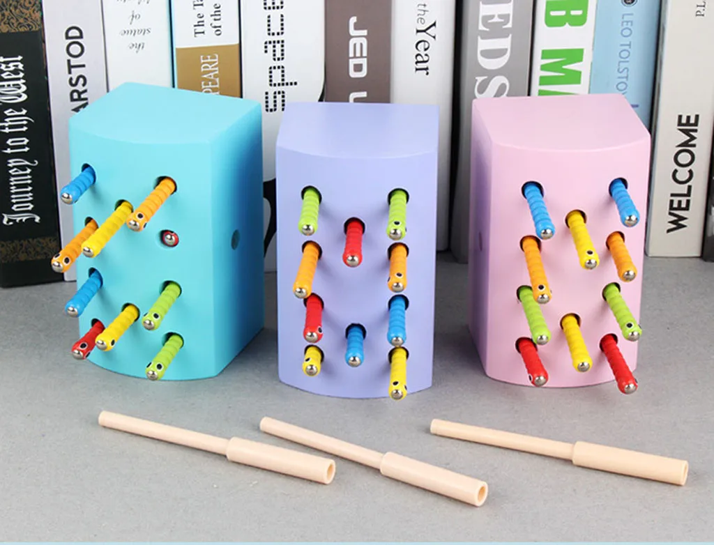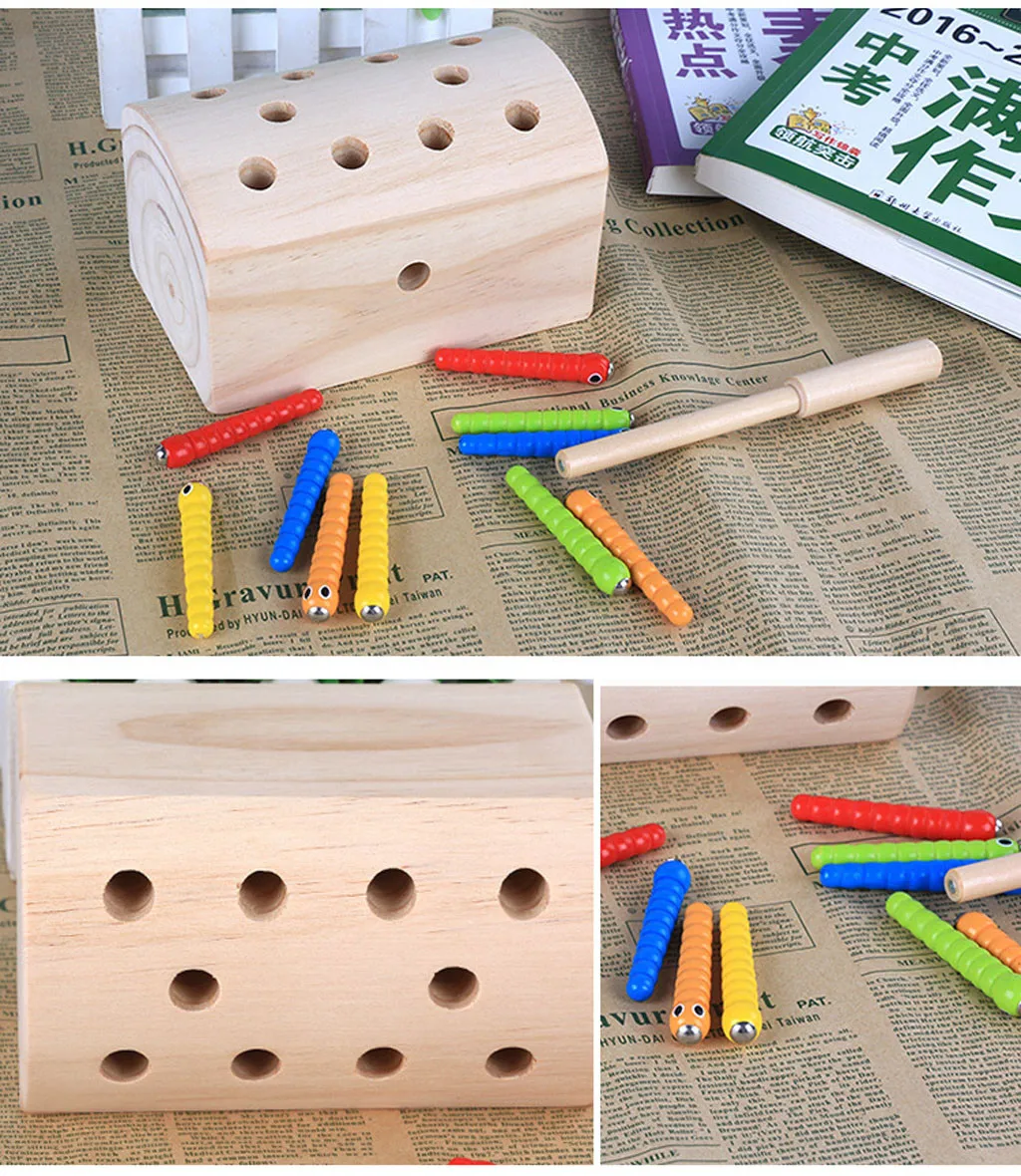 Детская деревянная коробка блок ловли червя магнитные игрушки развивающие познание цвета