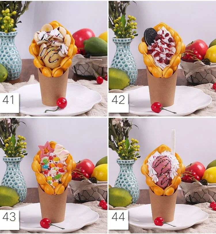 Искусственный Лед Крем Eggettes слоеная Вафля торт модель еды витрина имитация пузырьковой вафли фигурки Гонконг яйцо вафли модели