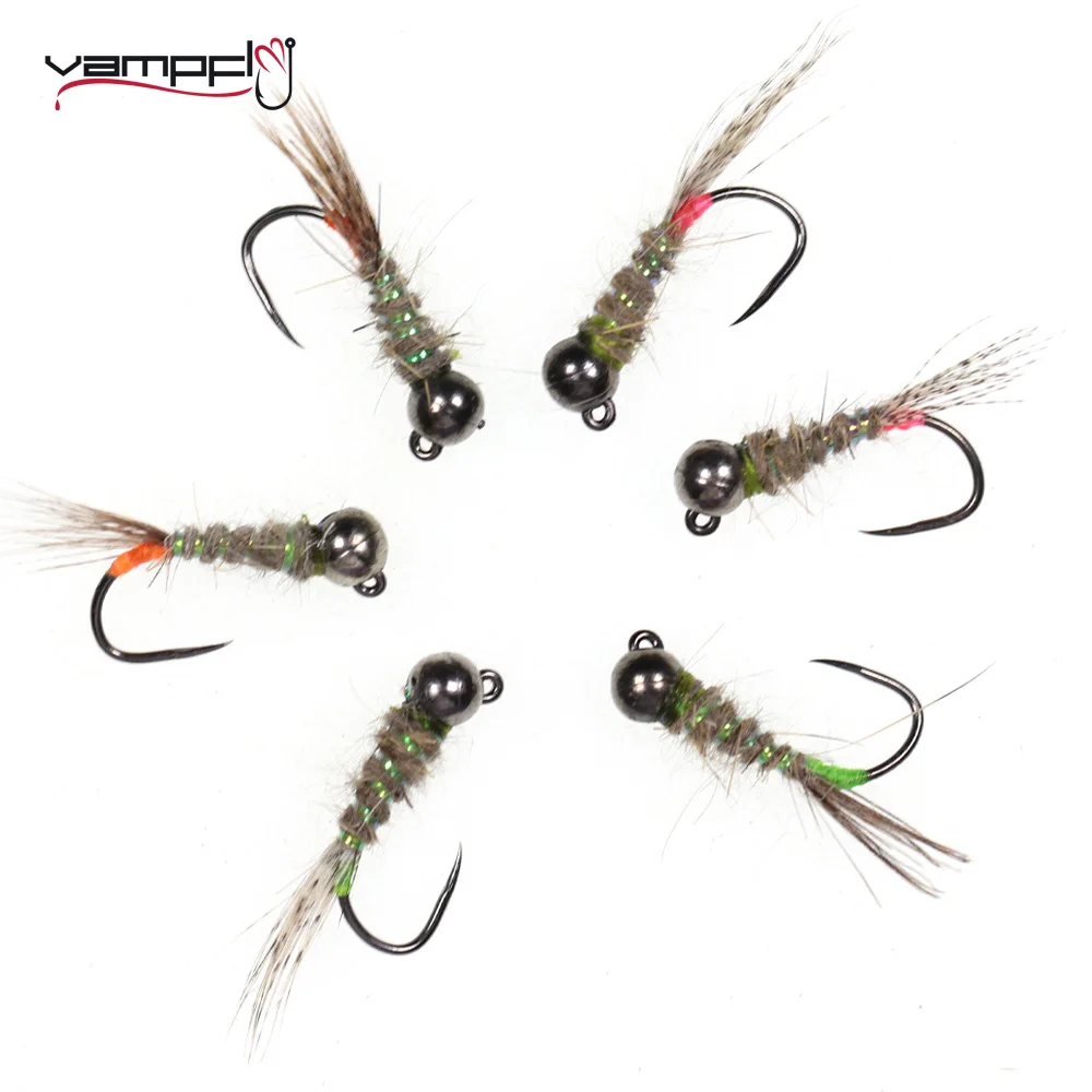 Vampfly 6 шт. Вольфрамовая головка лобзик Fly Euro Nymph Perdigon Nymphs Fly Barbless Hook быстро Тонущая форель рыболовные приманки 12 #14 #16 #