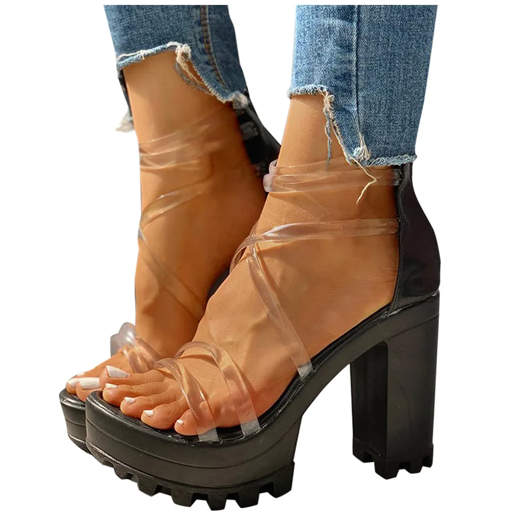 Женские босоножки на высоком массивном каблуке, на молнии, водонепроницаемая платформа