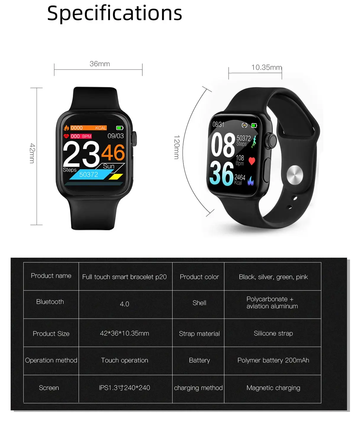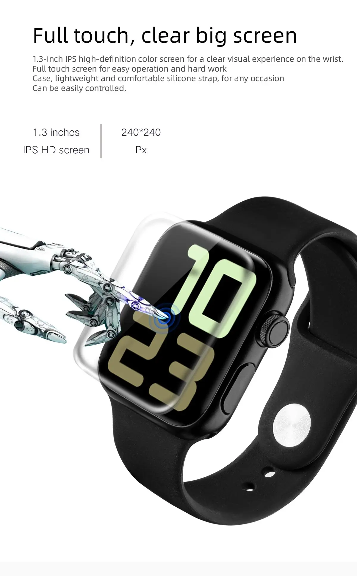 Описание товара Технические характеристики оборудования: Основной чип: HS6620D Чип сердечного ритма: Tianyi core 3300 Датчик ускорения: Silan Micro SC7A20 Характеристики дисплея: 1,3-дюймовый IPS * 240*240 Разрешение цветного экрана Режим кнопки: полносенсорная панель Тип батареи: литий-полимерный аккумулятор 200 мАч Динамический пульс/кровяное давление: Поддержка Метод зарядки: магнитный заряд Usb-накопитель: не поддерживается Двигатель: двигатель с кнопкой Потребляемая мощность в режиме ожидания: режим ожидания в течение 10-15 дней, нормальное использование в течение 5 дней Тип Bluetooth: Bluetooth 4,0 Другие параметры Название приложения: Настройка Тип источника: многоязычный шрифт Системные требования мобильный телефон: совместимость с Android 4,4 или выше, Apple IOS9.0 или выше Язык прошивки: английский, испанский, португальский, немецкий, тайский, итальянский, русский Язык применения: китайский, традиционный китайский, английский, немецкий, французский, испанский, корейский, японский, русский, украинский, арабский, тайский, итальянский, португальский, Основная функция: Спортивный журнал: шаг, время упражнений, пробег, потребление калорий, мониторинг сна, Мониторинг здоровья: измерение пульса в реальном времени (измерение пульса в течение всего дня), измерение кровяного давления, измерение уровня кислорода в крови Умные напоминания: Настраиваемые напоминания о тревоге, напоминания о сидячем положении, напоминания о звонках, напоминания об информации (SMS / QQ / WeChat / Skype / Facebook / Twitter / Line / WhatsApp) Другие функции: выбор набора номера, мультиспортивный режим (8 видов спортивных режимов, таких как ходьба по бадминтону), экран запястья, дисплей погоды, дисплей погоды, удаленная фотография, удаленная музыка, не беспокоить настройки режима, найти браслет, WeChat спорт, Браслет отказывается отвечать на звонки и совместим с приложением air update.
