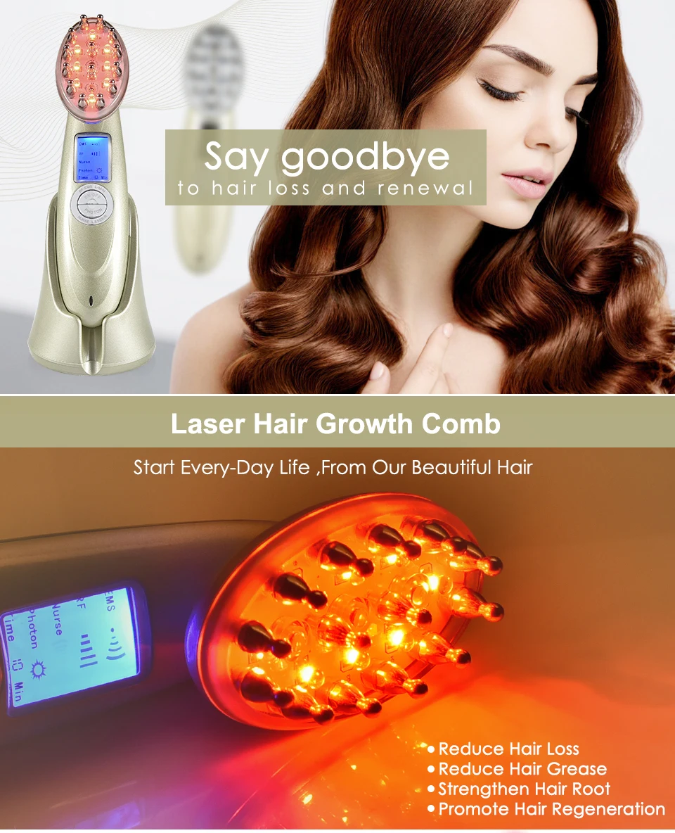 7 в 1 электрическая лазерная расческа для роста волос, защита от выпадения волос, инфракрасная RF Nano EMS, вибрационная Массажная щетка для волос, уход за волосами