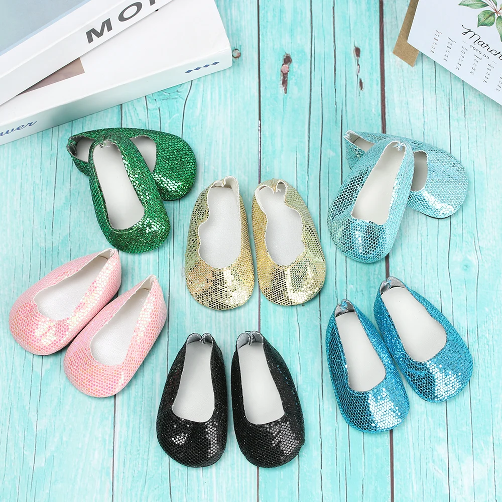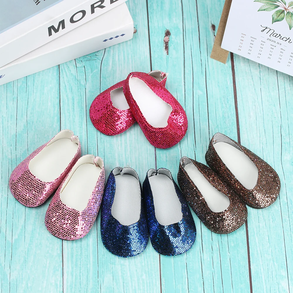 1 пара блестящих туфель для куклы-блестки, обувь разных цветов, подходит для кукол 18 дюймов/43 см, детский Кукольный домик, игрушки, аксессуары, подарки