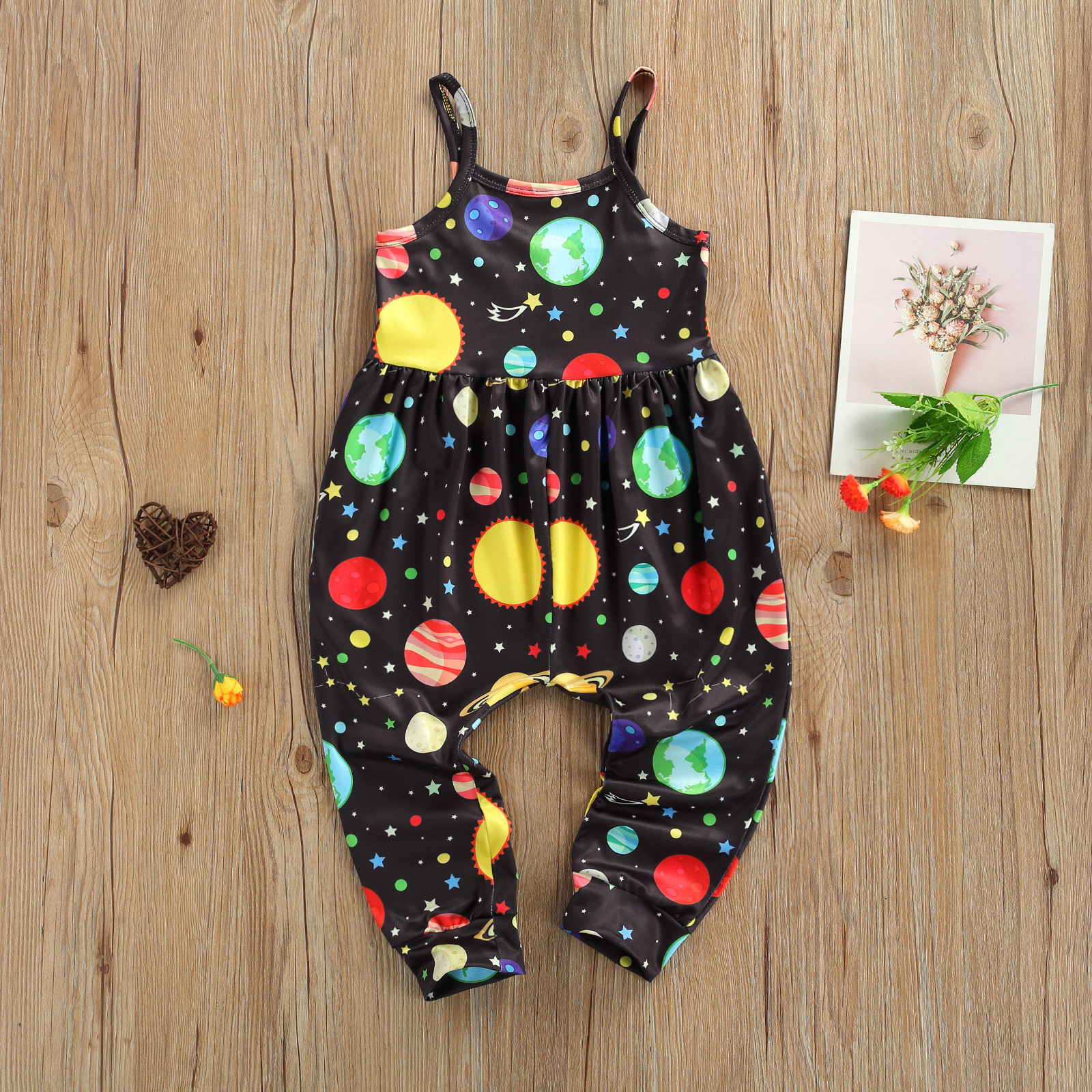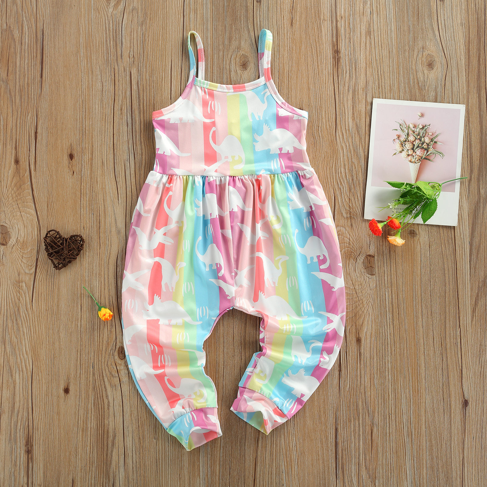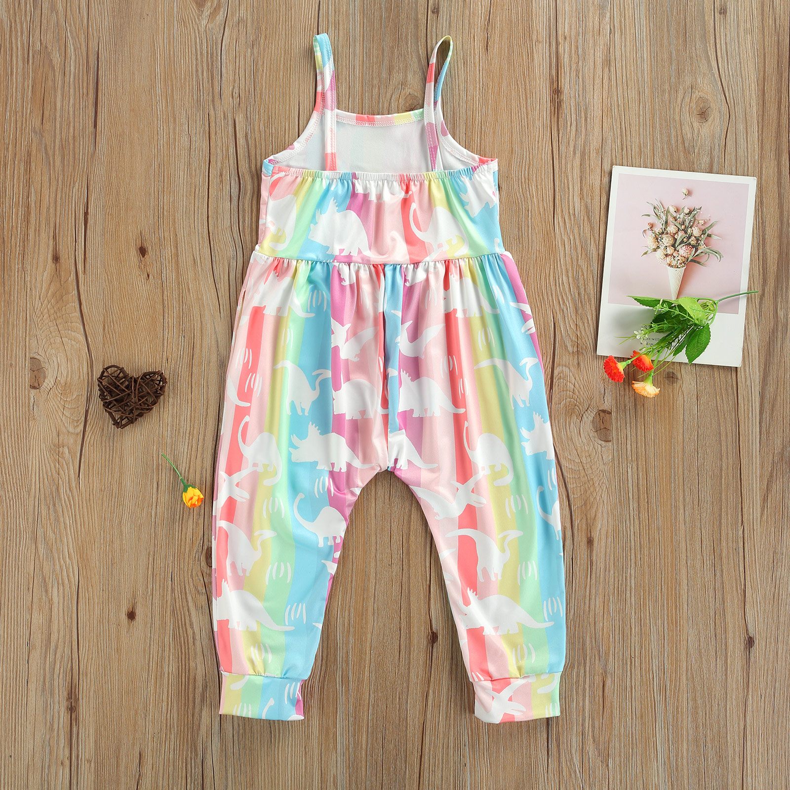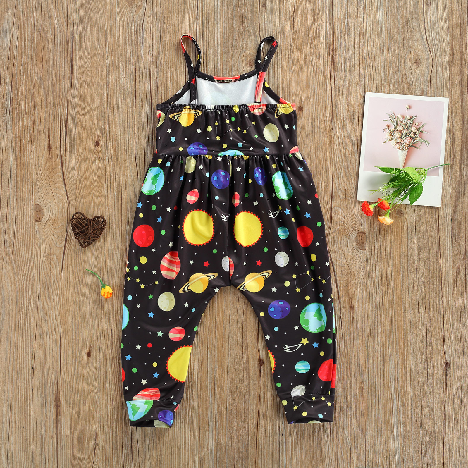 Детские летние комбинезоны; Разноцветные брюки на бретельках без рукавов с принтом для девочек