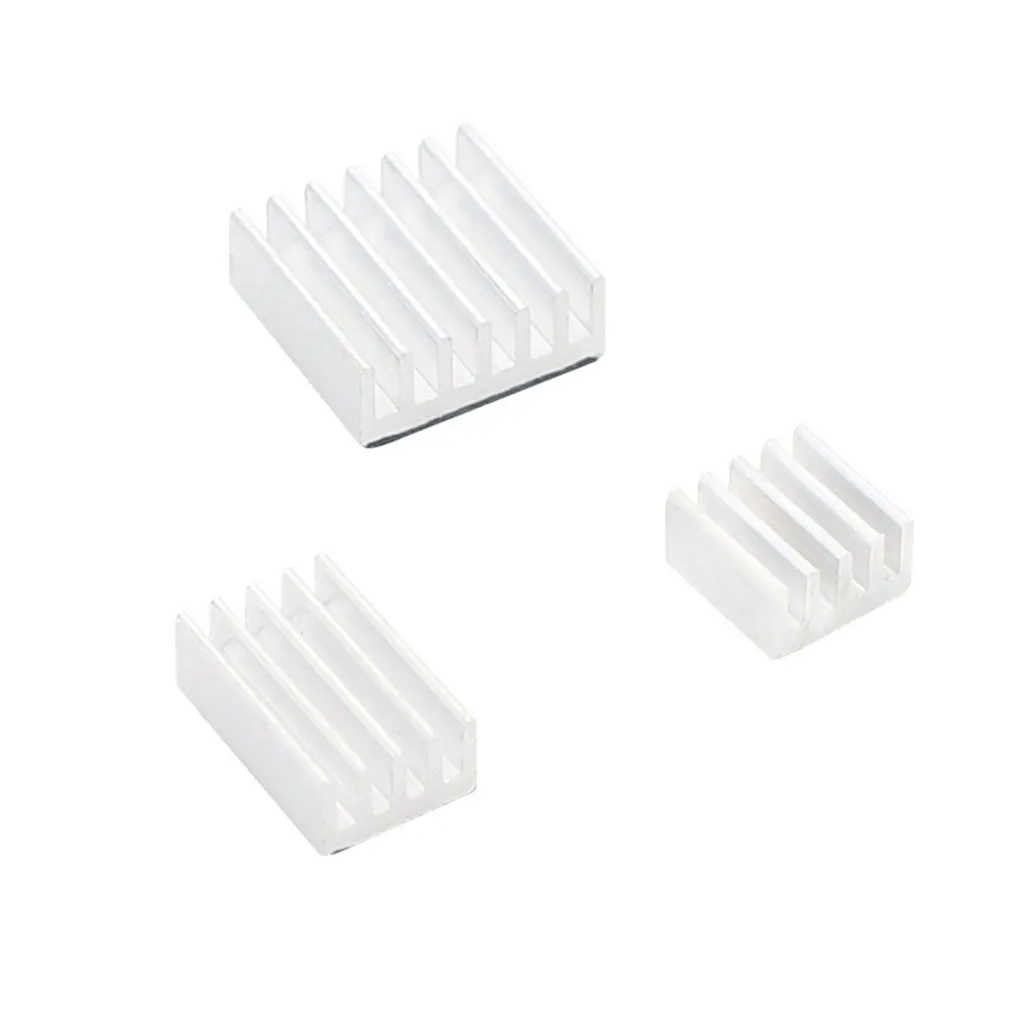 3 x aluminum heat sinks with thermal adhesive (Raspberry Pi board kit not included)