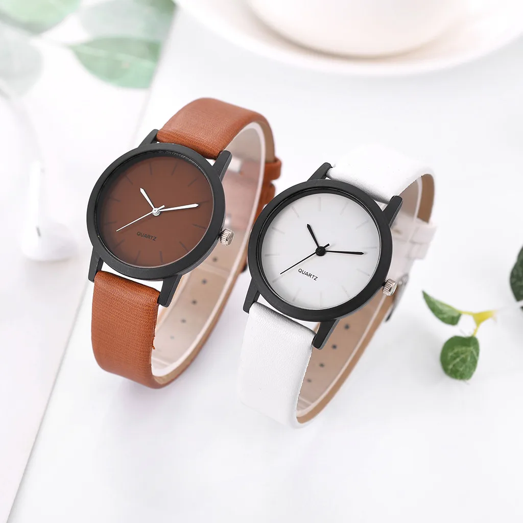 Vansvar Модные Простые креативные геометрические Круглые Женские кварцевые часы с ремешком
