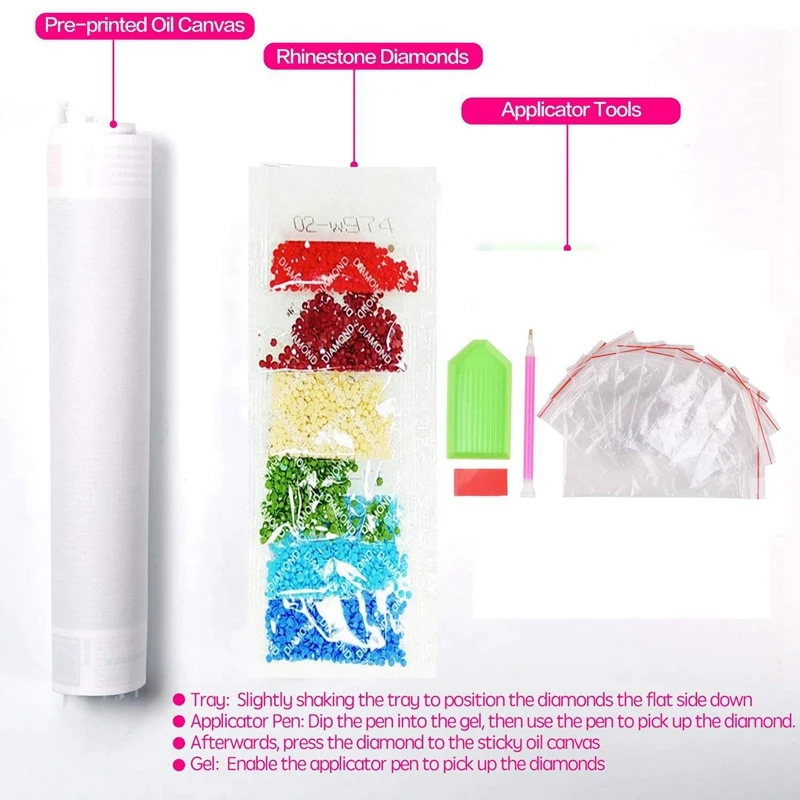 Сам по себе имеет липкий фон и пластиковую верхнюю часть, чтобы сохранить pi высокое прозрачное печатное масло холст является водонепроницаемым и имеет ровную текстуру, клейкий, а затем драгоценные камни будут держать, так что вы легко завершить изображение