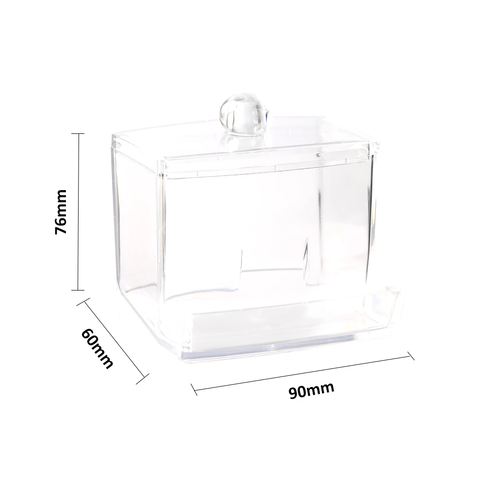 Это коробка с умным дизайном, чтобы положить ватные тампоны. Вы можете взять ватные тампоны рядом без необходимости поднимать губу, безопасно и безопасно. Прозрачный внешний вид простой и приятный, отличное украшение для вашей комнаты.