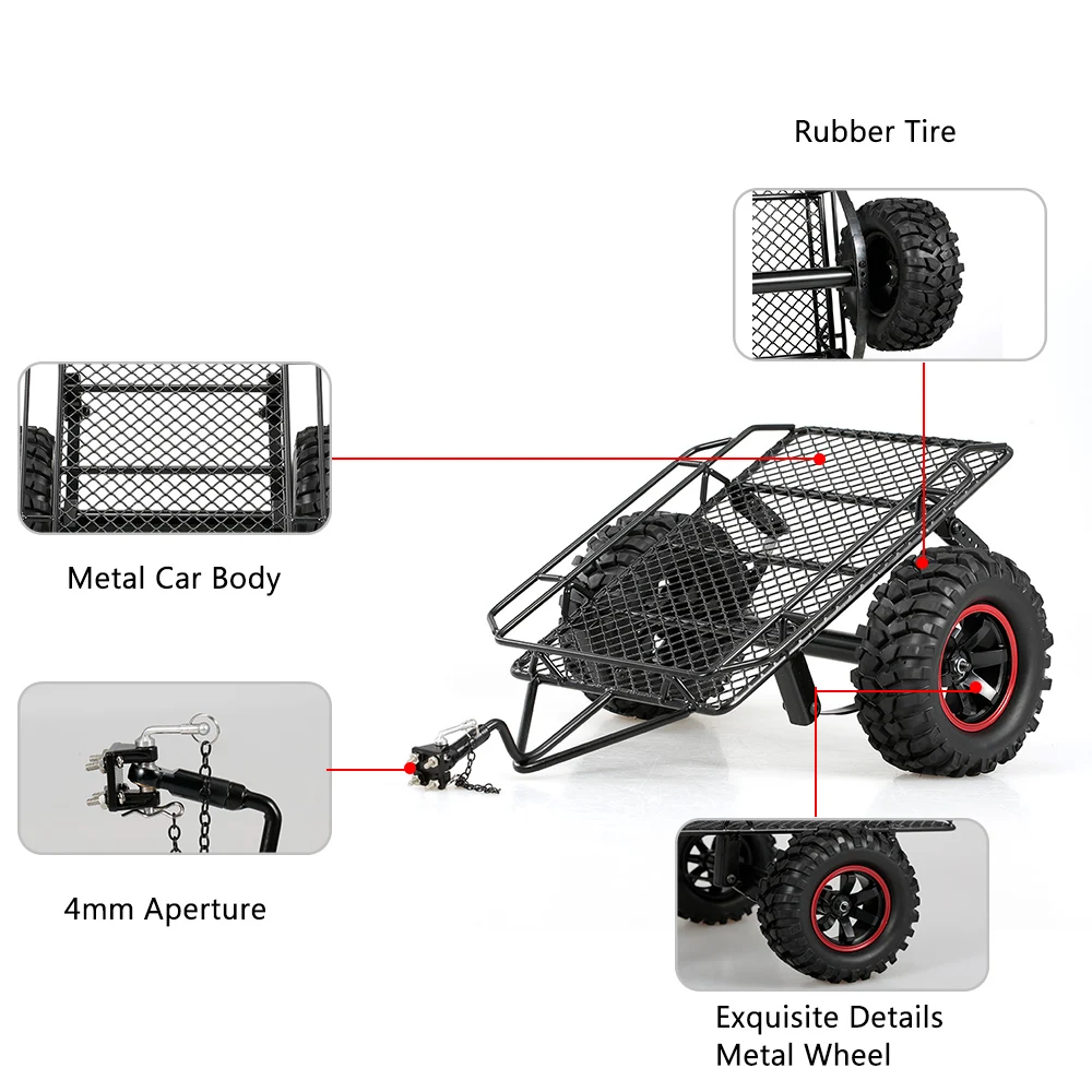 Прицеп поставляется с двумя резиновыми шинами, изготовленными из высокихКачественный материал специально разработан и изготовлен для Traxxas HSP Redcat RC4WD Tamiya Axial SCX10 D90 HPI RC Гусеничный автомобиль, чтобы наслаждаться DIY восторг.
