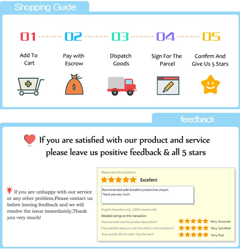 1. Большинство заказов отправляется в течение 1-2 рабочих дней после получения. Любой продукт будет протестирован на 100% перед отправкой. 2. Время доставки определяется перевозчиком и не включает выходные и праздничные дни. Сроки доставки могут меняться, особенно во время курортного сезона. Вы также можете получить информацию об отслеживании с официального сайта. 3. Если вы не получили посылку в течение 30 дней с момента оплаты, пожалуйста, свяжитесь с нами. Мы Отследим доставку и свяжемся с Вами как можно скорее. Наша цель – удовлетворение клиентов! Мы поддерживаем высокие стандарты качества и стремимся к 100% удовлетворенности клиентов! Отзывы покупателей очень важны. Мы просим вас, ПРЕЖДЕ чем оставлять нам нейтральный или отрицательный отзыв, связаться с нами, чтобы мы могли разрешить проблему к общему удовольствию. Невозможно решить проблемы, если мы о них не знаем!