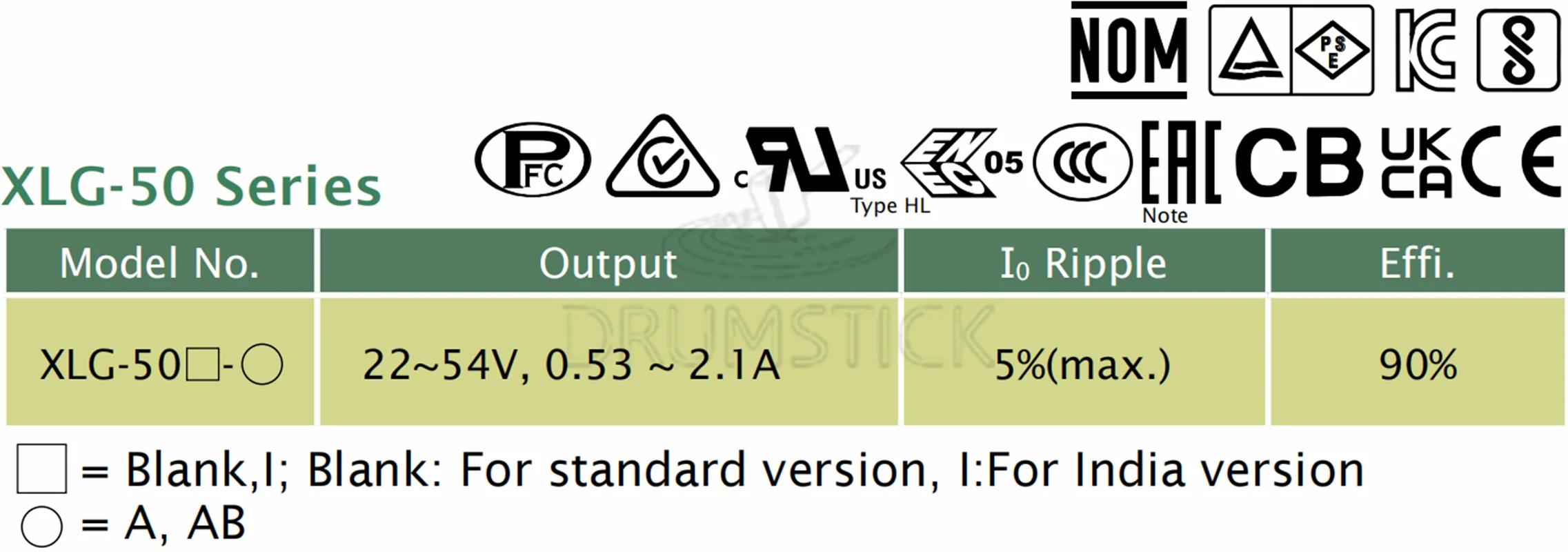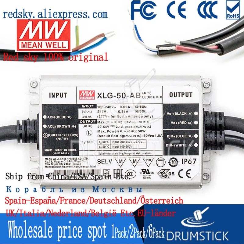 MEAN WELL металлический корпус XLG-50 с функцией PFC 3 в 1 Режим затемнения/C.P/C.V. или C.C./IP67 одиночный выход