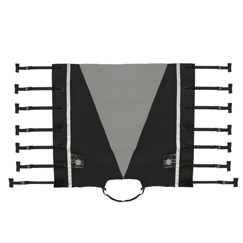Переделанная буксировочная крышка оснащена 7 регулируемыми крепежными лямками с обеих сторон, которые легко крепятся к навесным рельсам. Также имеется регулируемый ремешок для фиксации рамки.