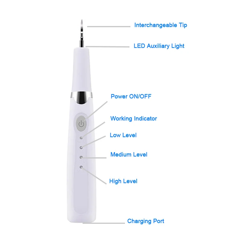 1. Высокочастотная ультразвуковая вибрация может эффективно удалять зубной камень, вычисления, налет, чай и пятна дыма, шепот тихий, не мешая другим, мягкий и безболезненный, чтобы избежать повреждения зубов. 2. Медицинские наконечники из нержавеющей стали марки 304, не ржавеют и не коррозионно-стойкие для длительного безопасного использования, просты в эксплуатации для труднодоступных районов с простыми захватами. 3. Три регулируемых уровня передачи позволяют быстро переключаться одной кнопкой управления, подходит для различных типов зубов и подходит для многоцелевого применения. 4. Встроенный светодиодный вспомогательный светильник высокой яркости помогает избежать мертвых концов с более четким эффектом просмотра, делая чистку зубов ветерком. 5. Эргономичный Обтекаемый корпус обеспечивает удобные и безопасные ручки, удобно держать в течение длительного времени. 6. Питание от подключаемой зарядки для непрерывного удовольствия, два варианта подключения адаптера для бесплатных опций. 7. Экологически чистый и легкий материал для удобства переноски, моющиеся и взаимозаменяемые головки для легкой очистки, гигиены и поддержания бесплатно, подходит как для дома, так и для путешествий.