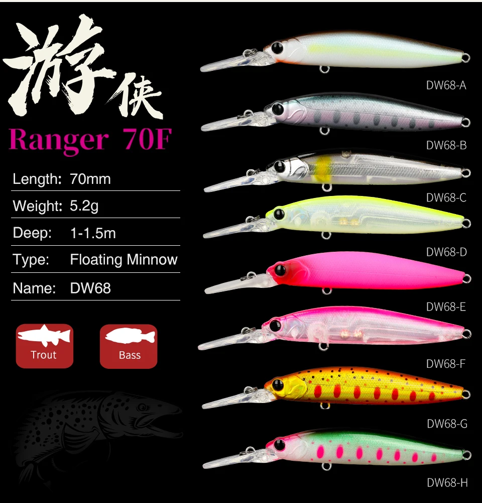 2. Серия Ranger имеет 23 мм длинная губа, которая помогает им быстро нырять и производит гораздо более широкое действие, чем большинство minnow.