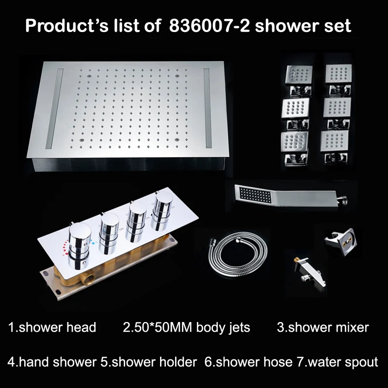 Светодиодное потолочное крепление, набор для душа, 3 способа, термостатический смеситель для ванной комнаты, смеситель для душа с насадкой для душа с массажем тела