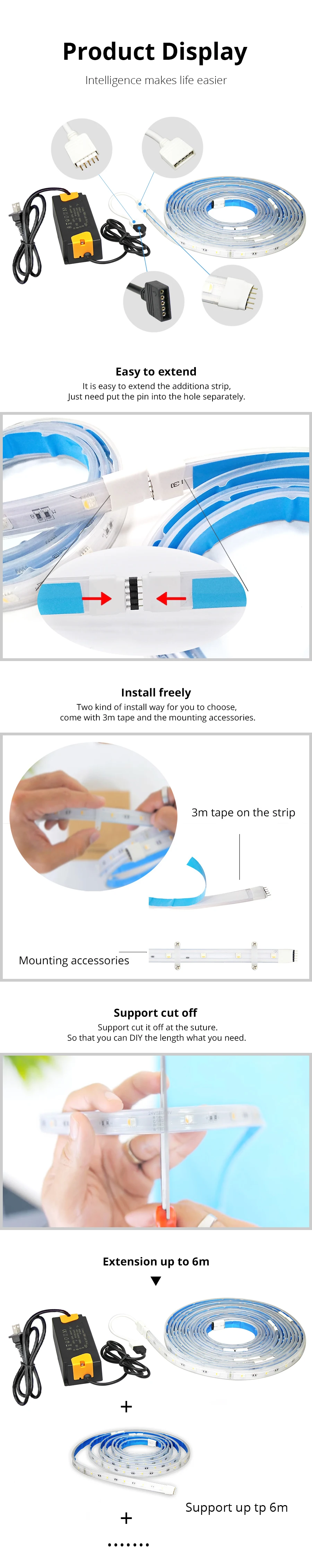 - User-friendly Design: All-in-one LED strip kit comes with an adapter, a wifi controller and 1m light strip. Plug and play. IP44 Waterproof silicone coating protects it very well and makes it easy to clean. The strong adhesive on the back makes it easily mounted and do not come off.