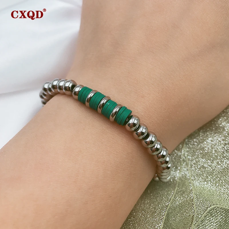 Товар: Модный женский браслет Цвет: стальной и зеленый Материал: нержавеющая сталь, стекло и Полимерная глина И агат Размер: как на картинке Длина: 18 см Количество: 1 пара Упаковка: OPP посылка