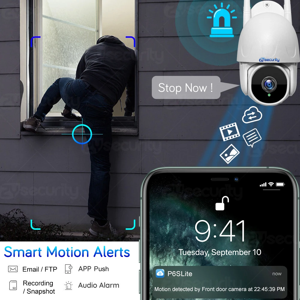Умная головка PTZ-камеры zysecure с Wi-Fi вращается на 350 °, наклон 90 °. Вы можете управлять им через приложение и получать широкий обзор на каждый дюйм вашего дома.