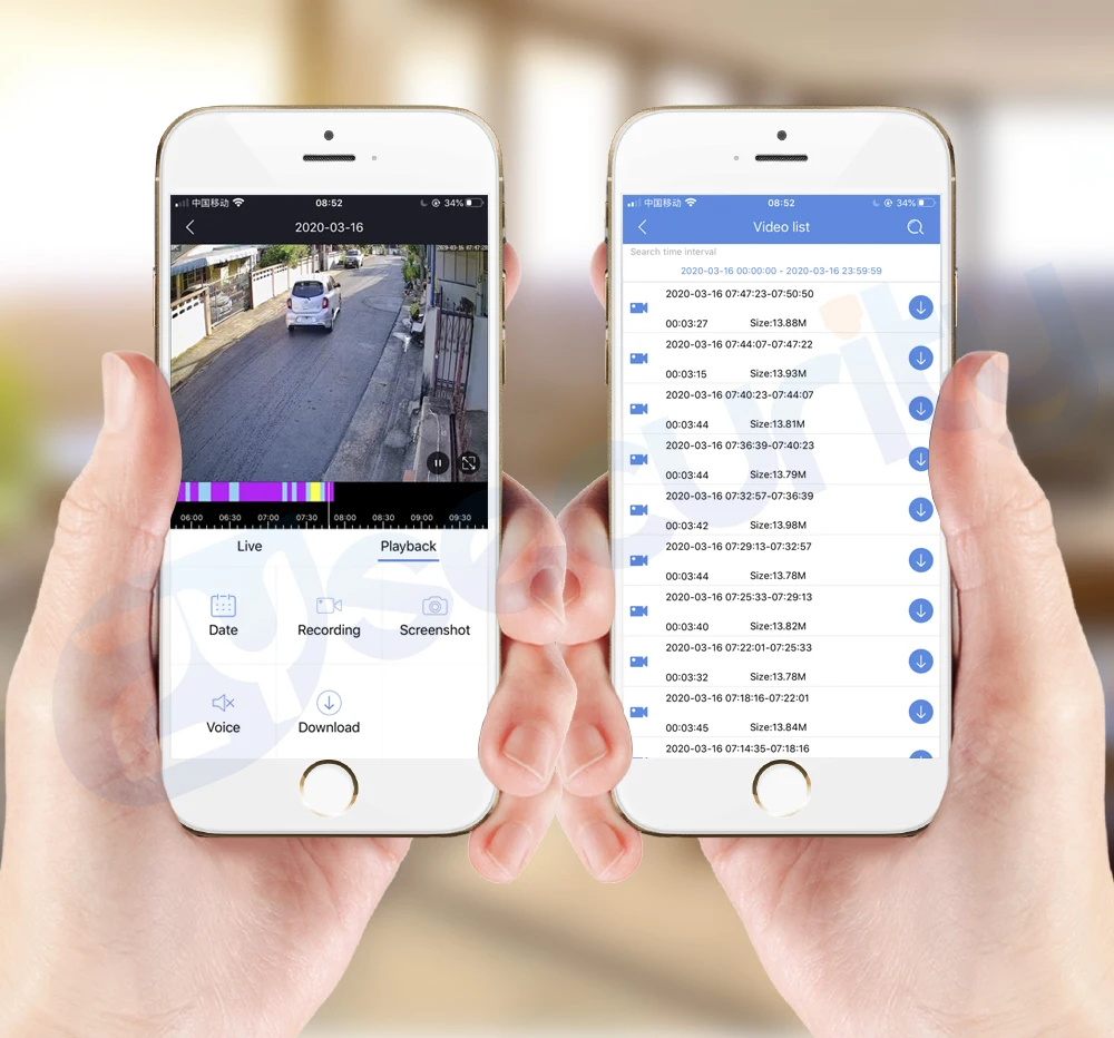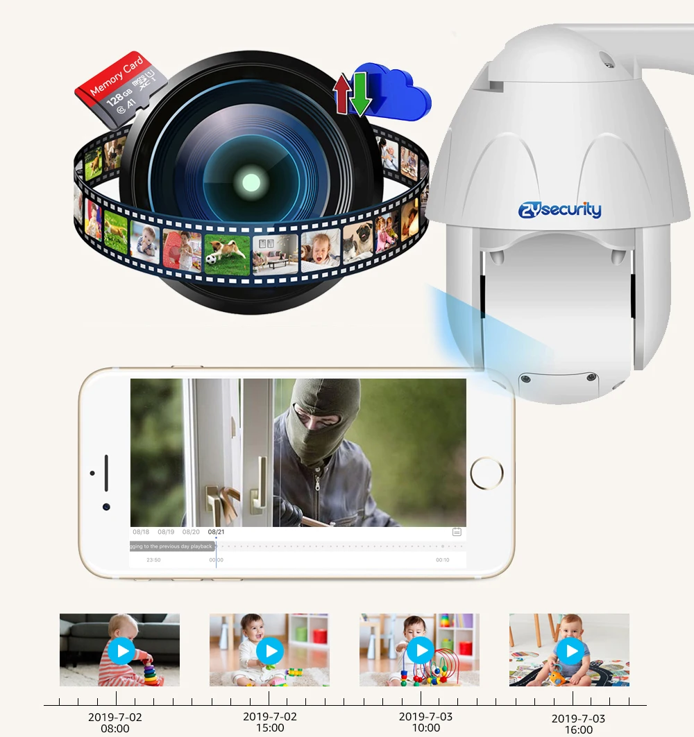 Скачайте записанное видео из приложения, не нужно снимать SD-карту, Вы можете воспроизвести видео ваших милых детей, домашних животных и семьи, чтобы найти много интересных моментов, которые запоминаются. Просто вокните в приложение, чтобы найти видео с облачной/SD-карты, чтобы увидеть, что случилось. Эта камера может помочь вам 7/24/365 циклической записи много замечательных моментов, чтобы вы могли их собрать.