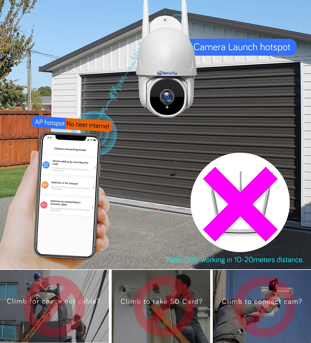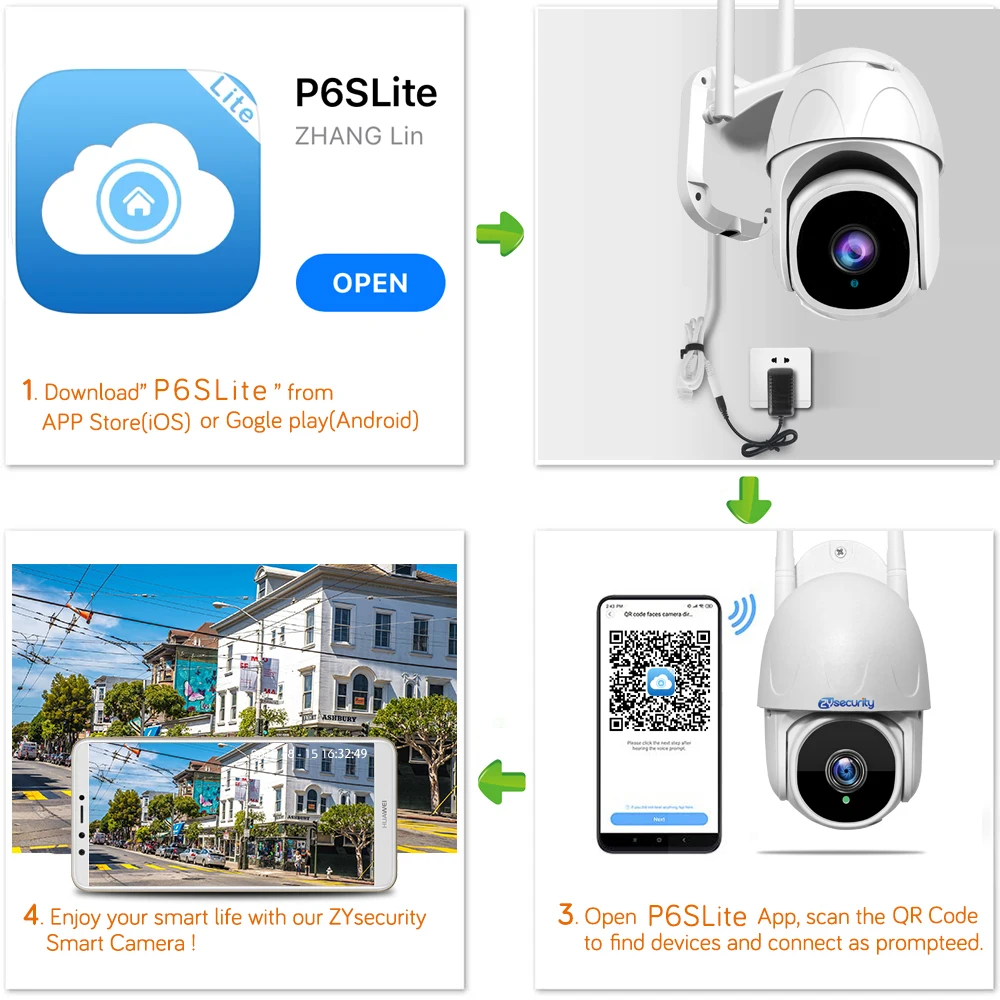 Zysecurity smart Wifi PTZ камера отличается простая Настройка 1-ключ подключение Wi-Fi, и легко устанавливается самостоятельно.