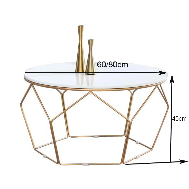 Мраморный журнальный столик, простой домашний маленький круглый столик для гостиной, дивана, диаметр центрального стола 60 см, 80 см, черная и золотистая рама