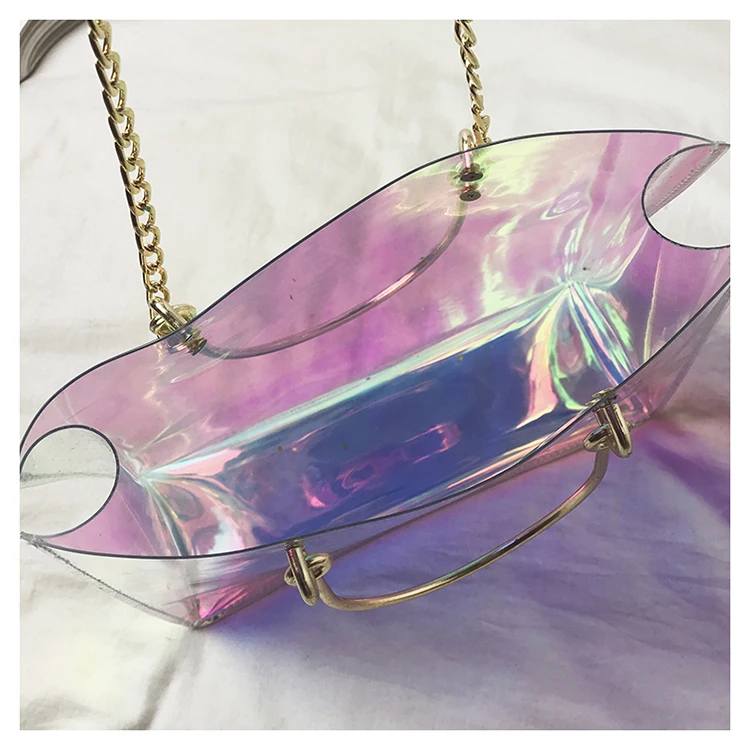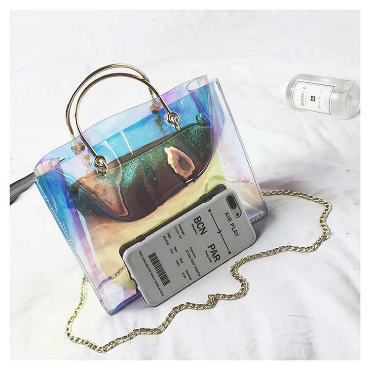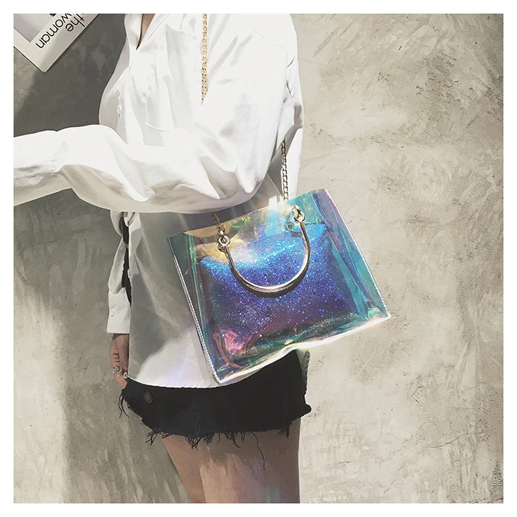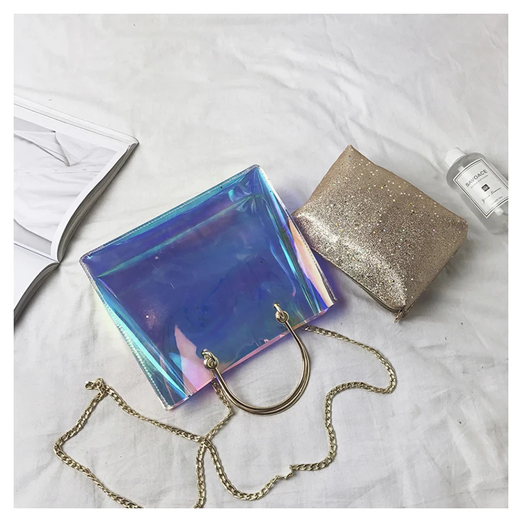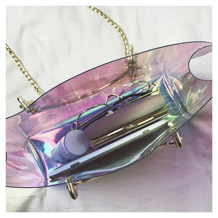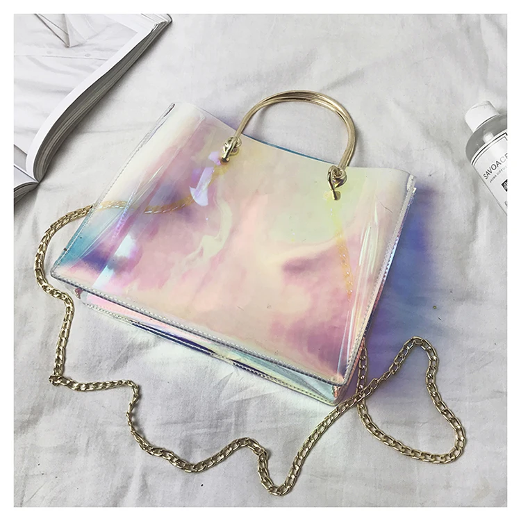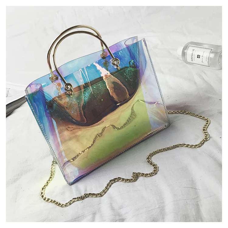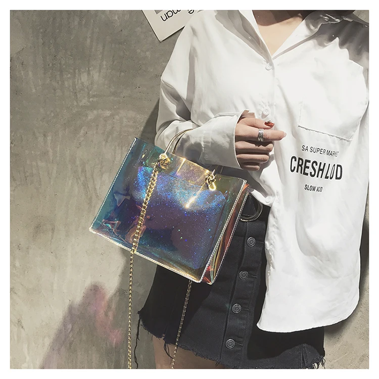 Лазерная прозрачная Желейная сумка женская модная металлическая цепочка ручная